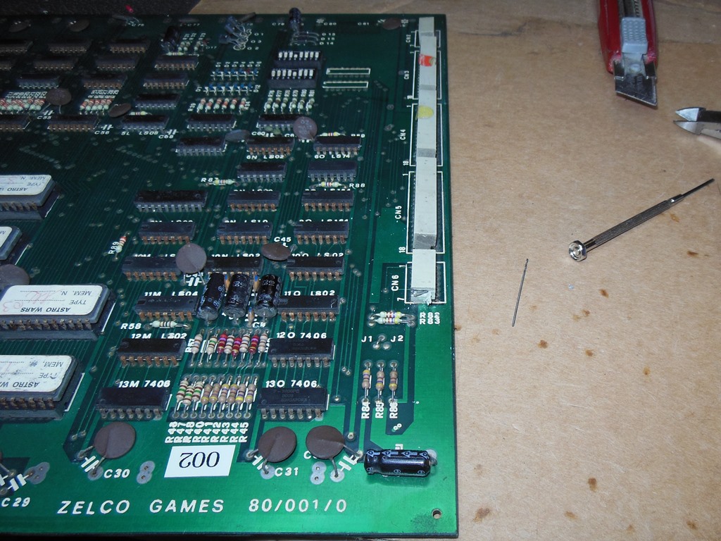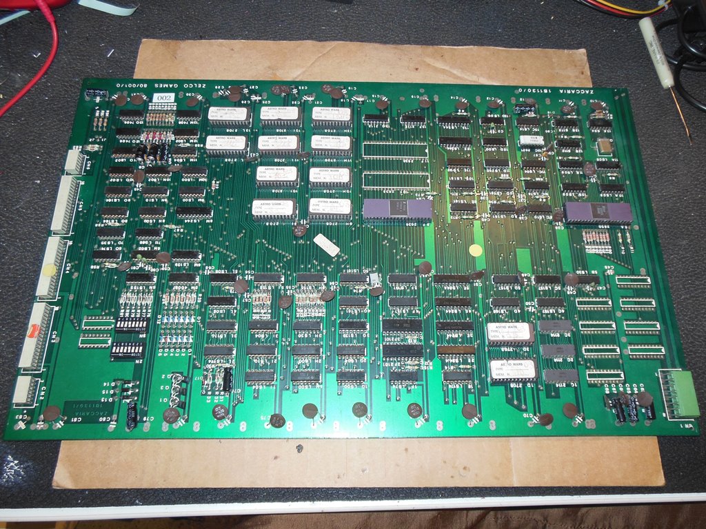 Since I had no known good working spare Astro Wars game PCB, I decided to repair a second board as a backup (in fact, I decided to put together a "Show Spares Box" with spare/backup game boards for all the games currently running). I had a few untested Astro Wars game boards but all of them had corroded sockets at least. I picked the best of the bunch to start with.