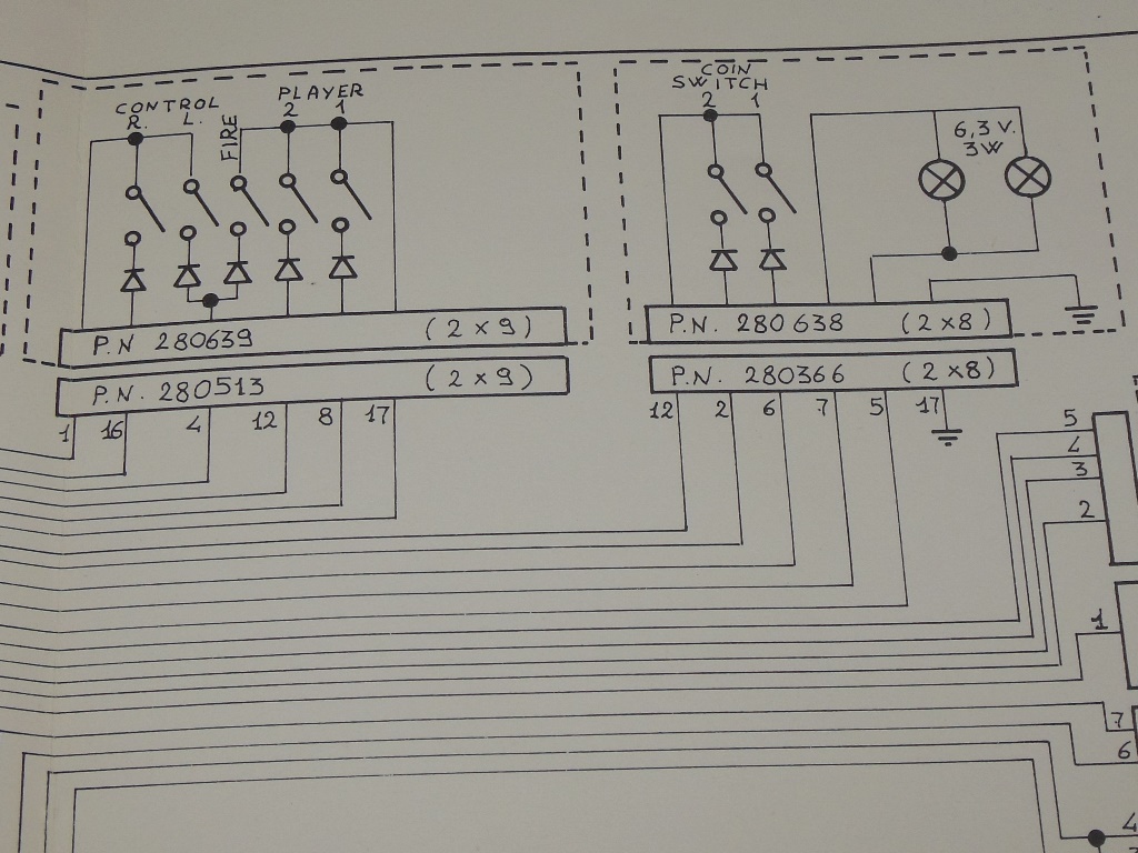 With the newly constructed control panel the game inputs could now be properly tested. Everything seemed to be working OK - coin 1, start 1 & 2, left, right, fire - except the coin 2 input had no effect (didn't coin the game). The coin 2 input was OK up to IC 5M (40097) so a bad IC 5M was suspected, set aside for now.