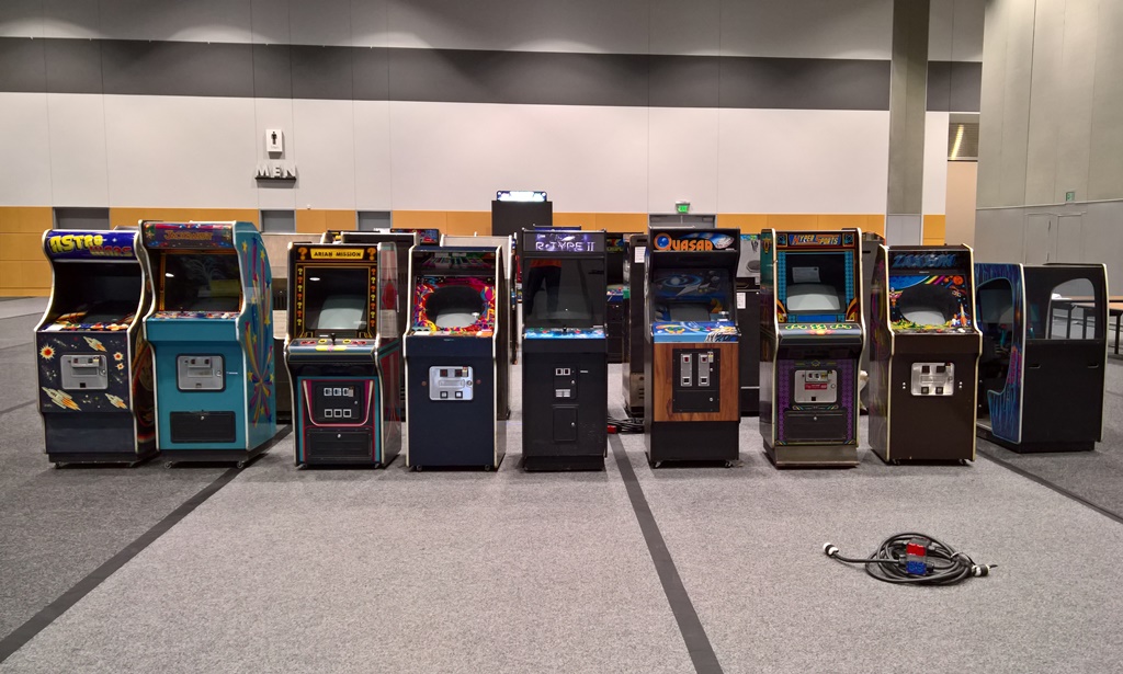 The game made it to the show and initially was working OK on power-on on Thursday. After a few hours, however, the game started to have hang & crash issues. I brought a spare untested game board with me on Friday to swap into it but by then the monitor was also dead :(