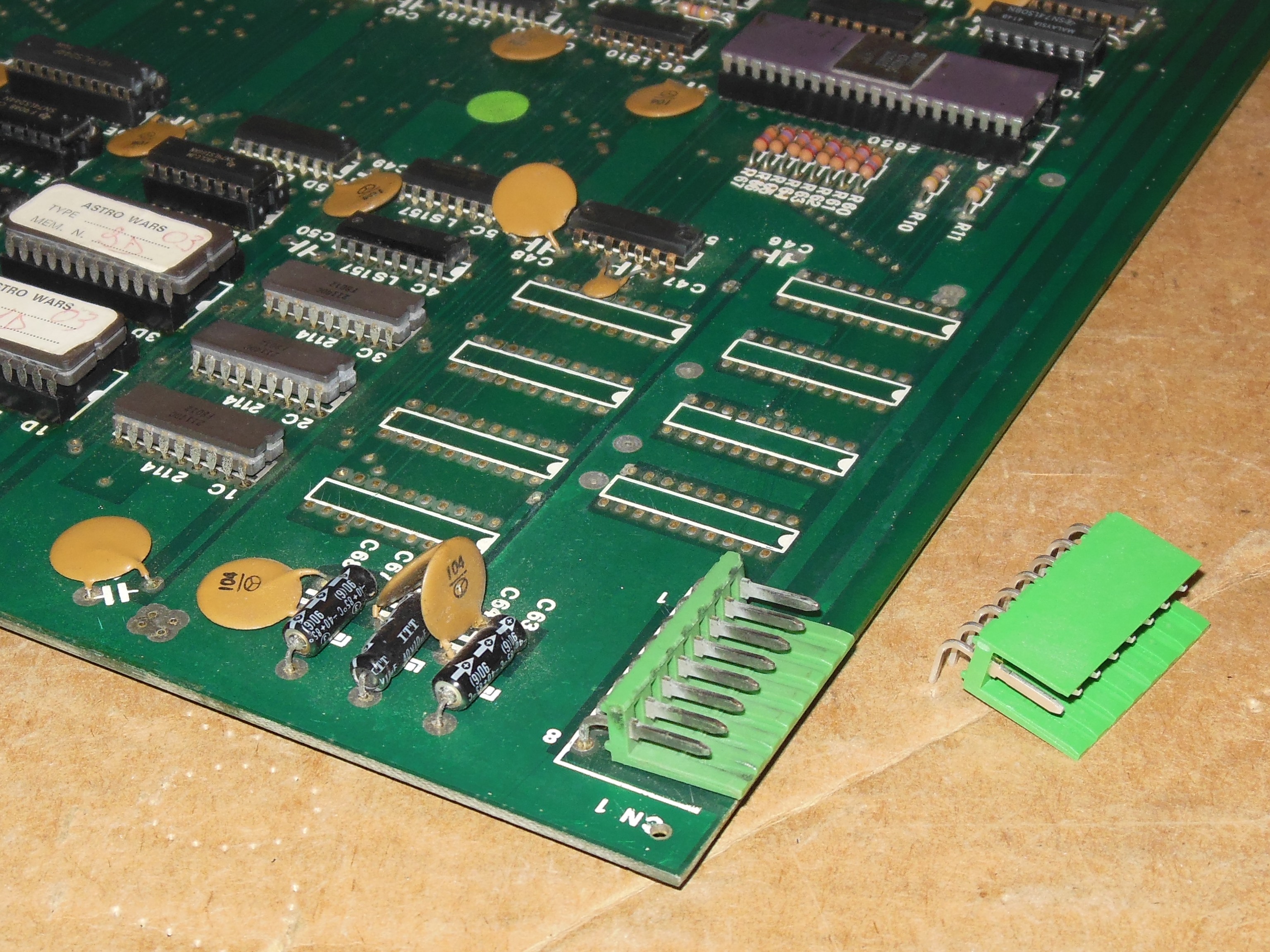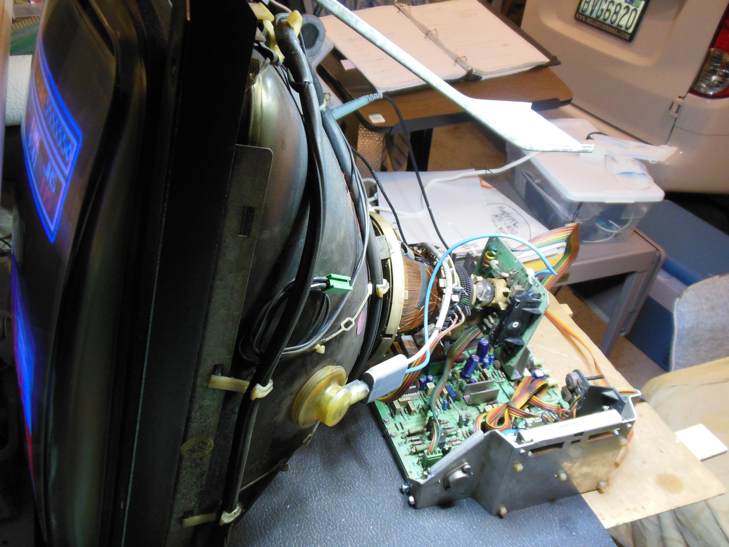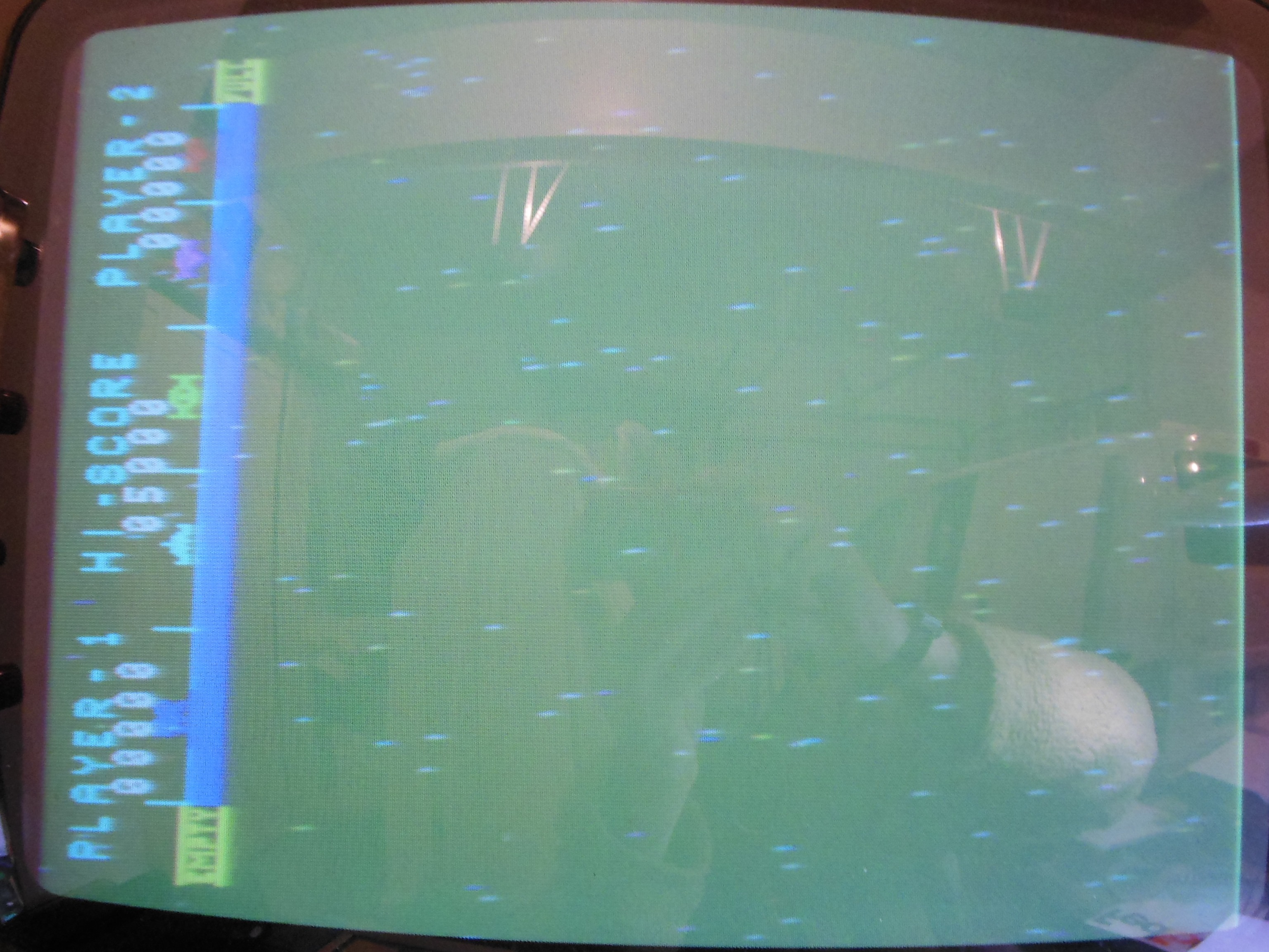 The game failed on show day 1 with no picture and playing blind. Inspection found chatter noise coming from the chassis and no HV. The monitor chassis was swapped out with one borrowed from the dead Sea Scare to get Astro Wars going again and the game made it almost to the end of the show before the game PCB failed with no boot.