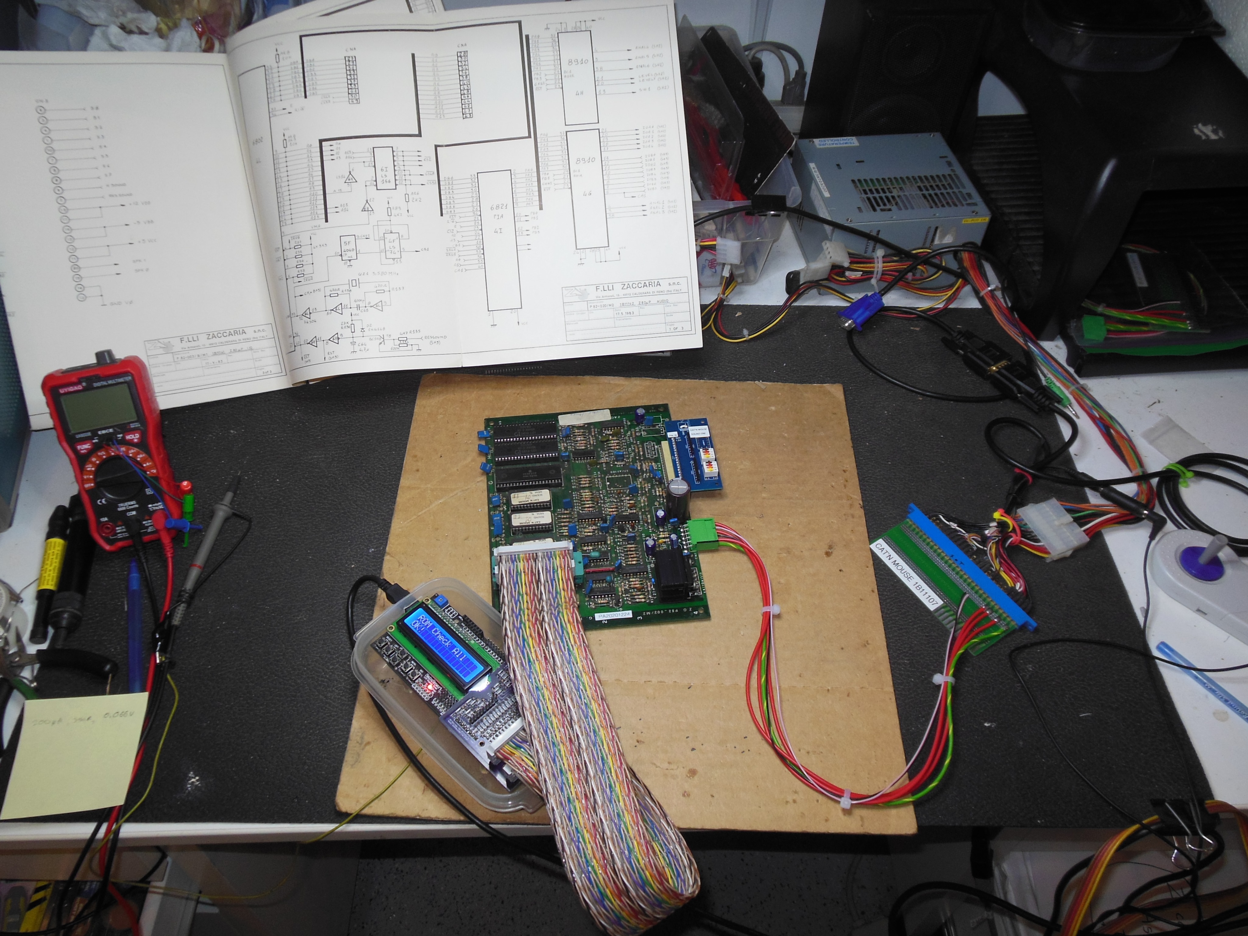 A small JAMMA adaptor was constructed to run the sound PCB on the bench: