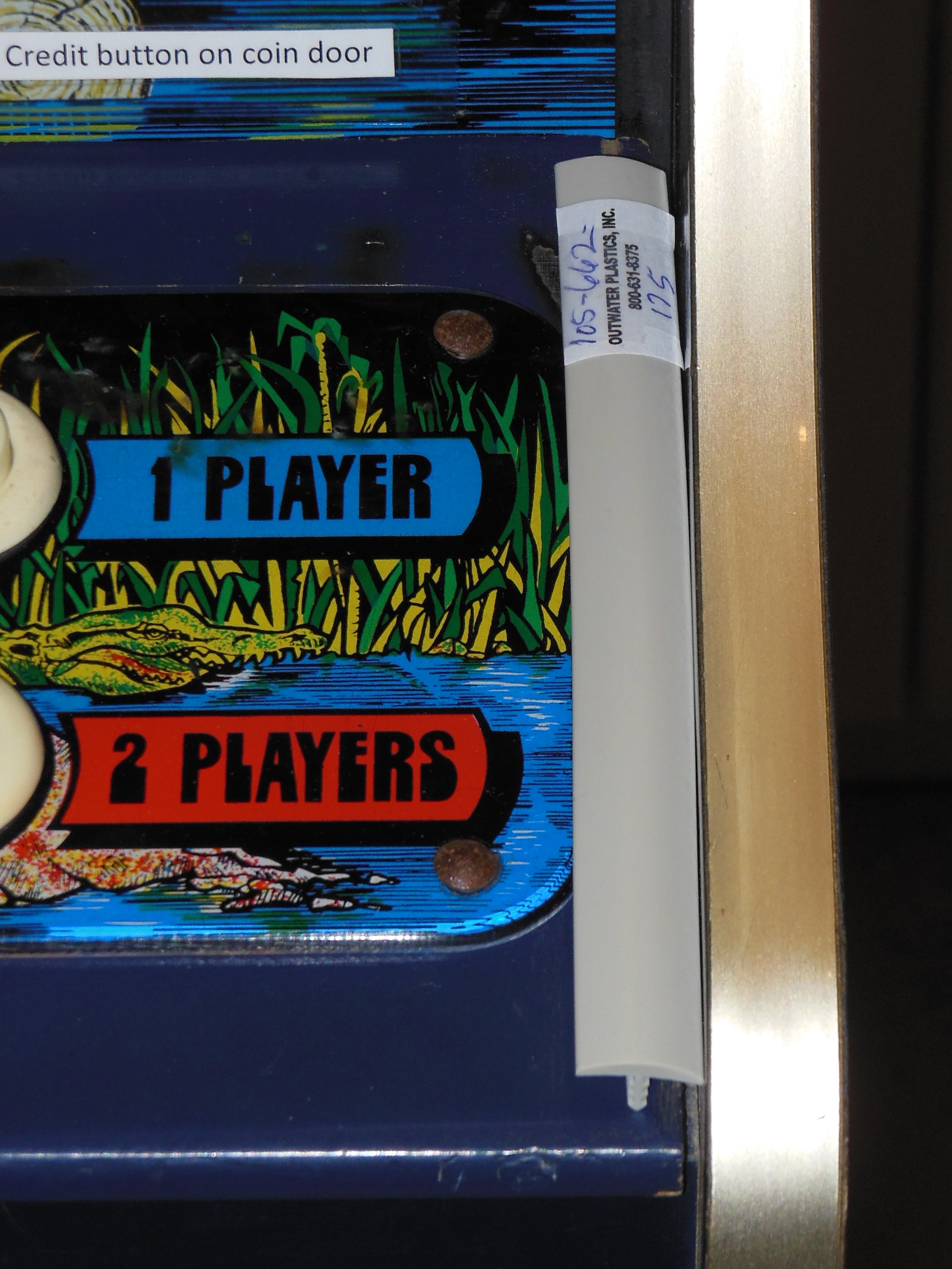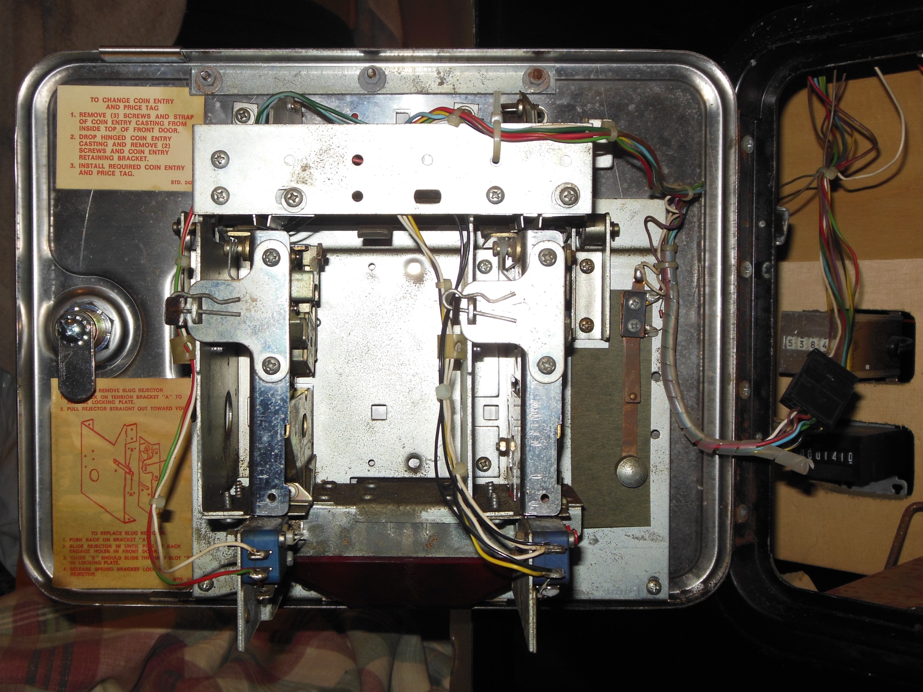The existing wiring in the woodgrain none-Zaccaria coin door was removed and the coin door loom from the Quasar moved over. The only splice needed was for the coin door lights.
