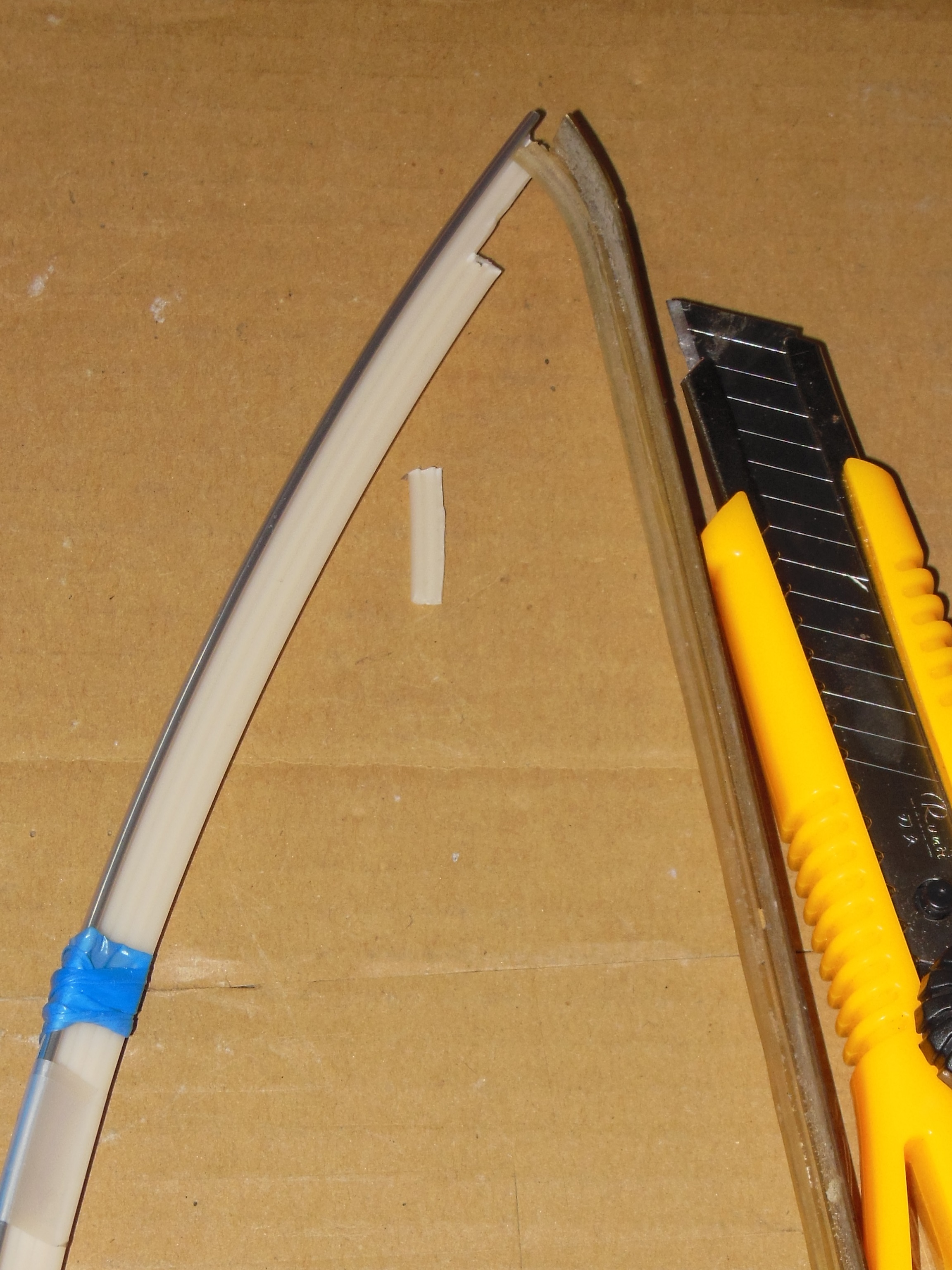The spine on the Outwater T-molding was longer than the original such that it wouldn't fit flush into the cabinet. After trimming the sample spine, the T-molding fitted flush to the cabinet and whilst not full flat like the original the slight curve wasn't too noticeable.