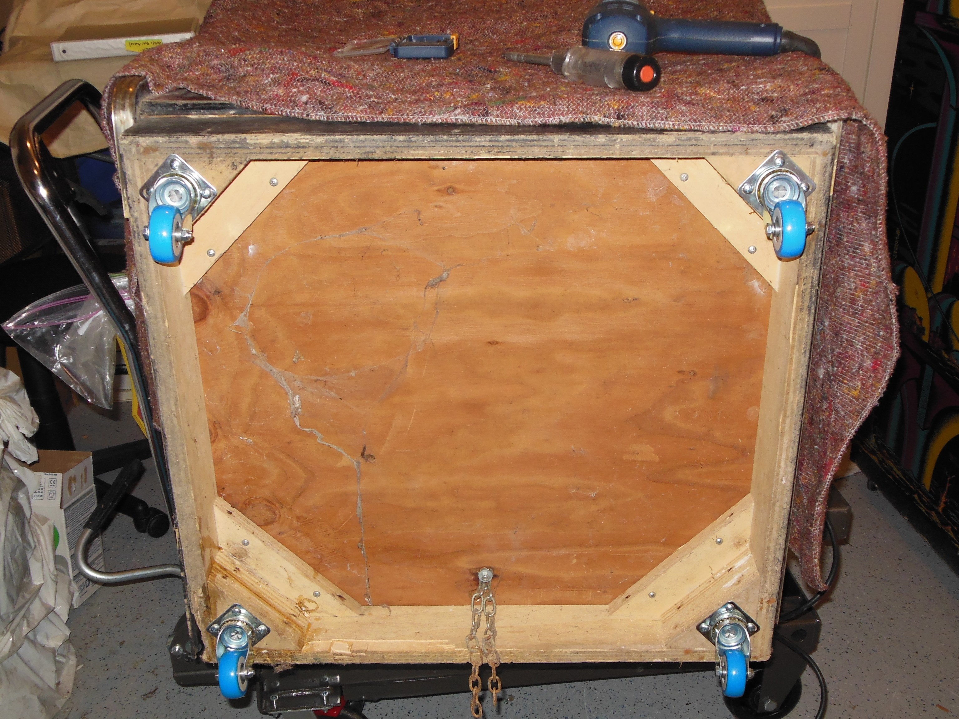 Whilst it was on the trolly for transport, castors were fitted on the base.