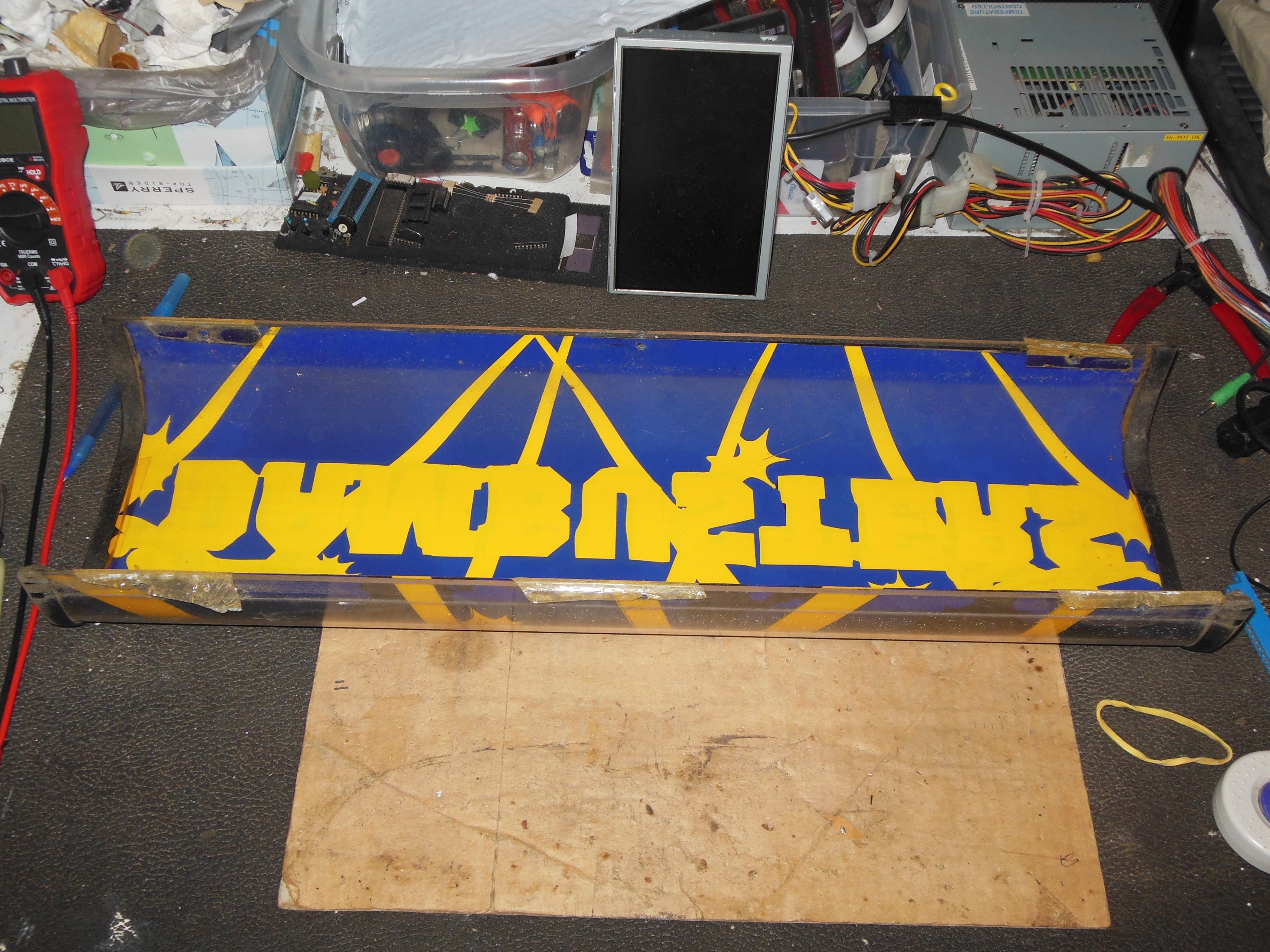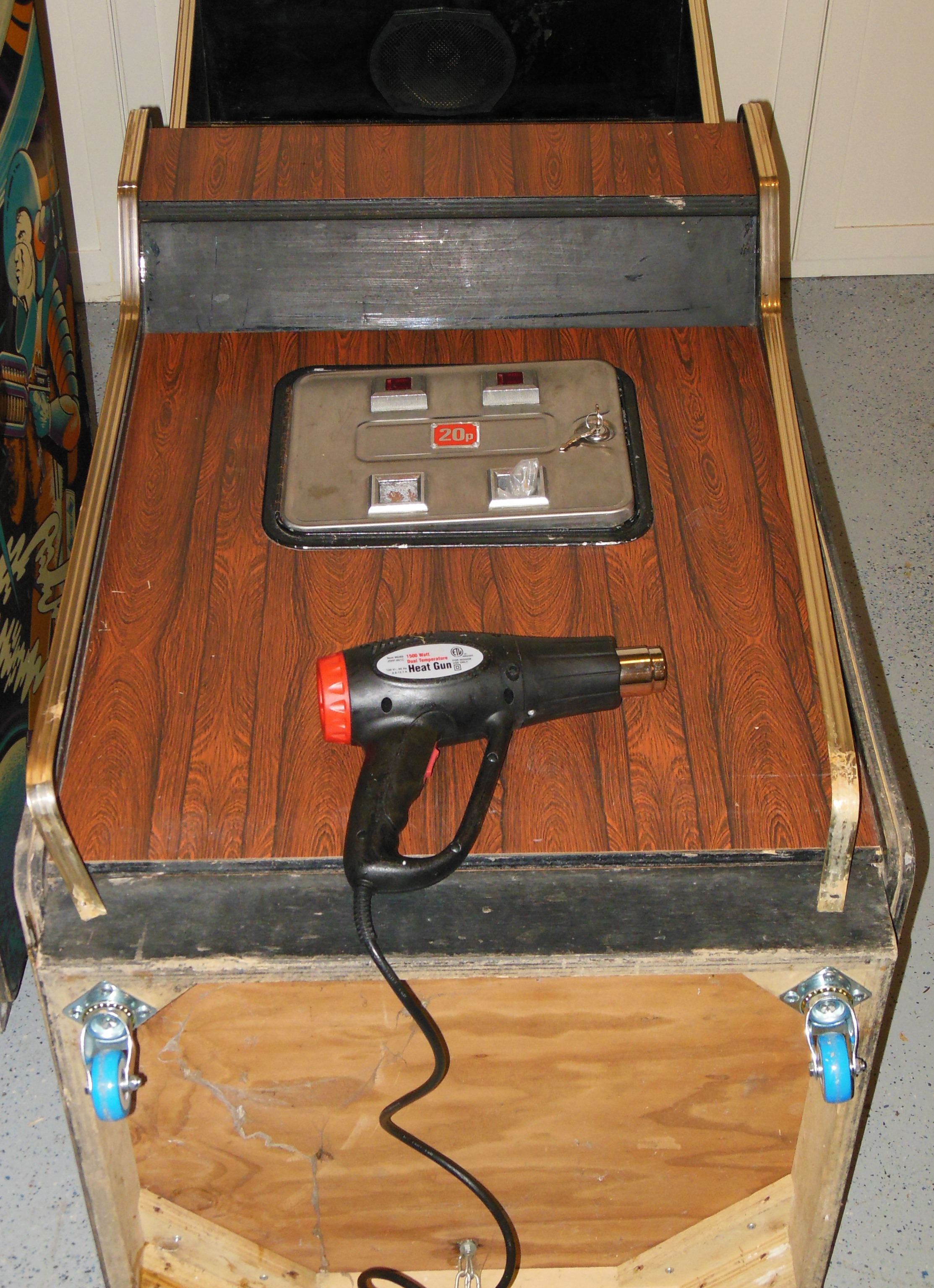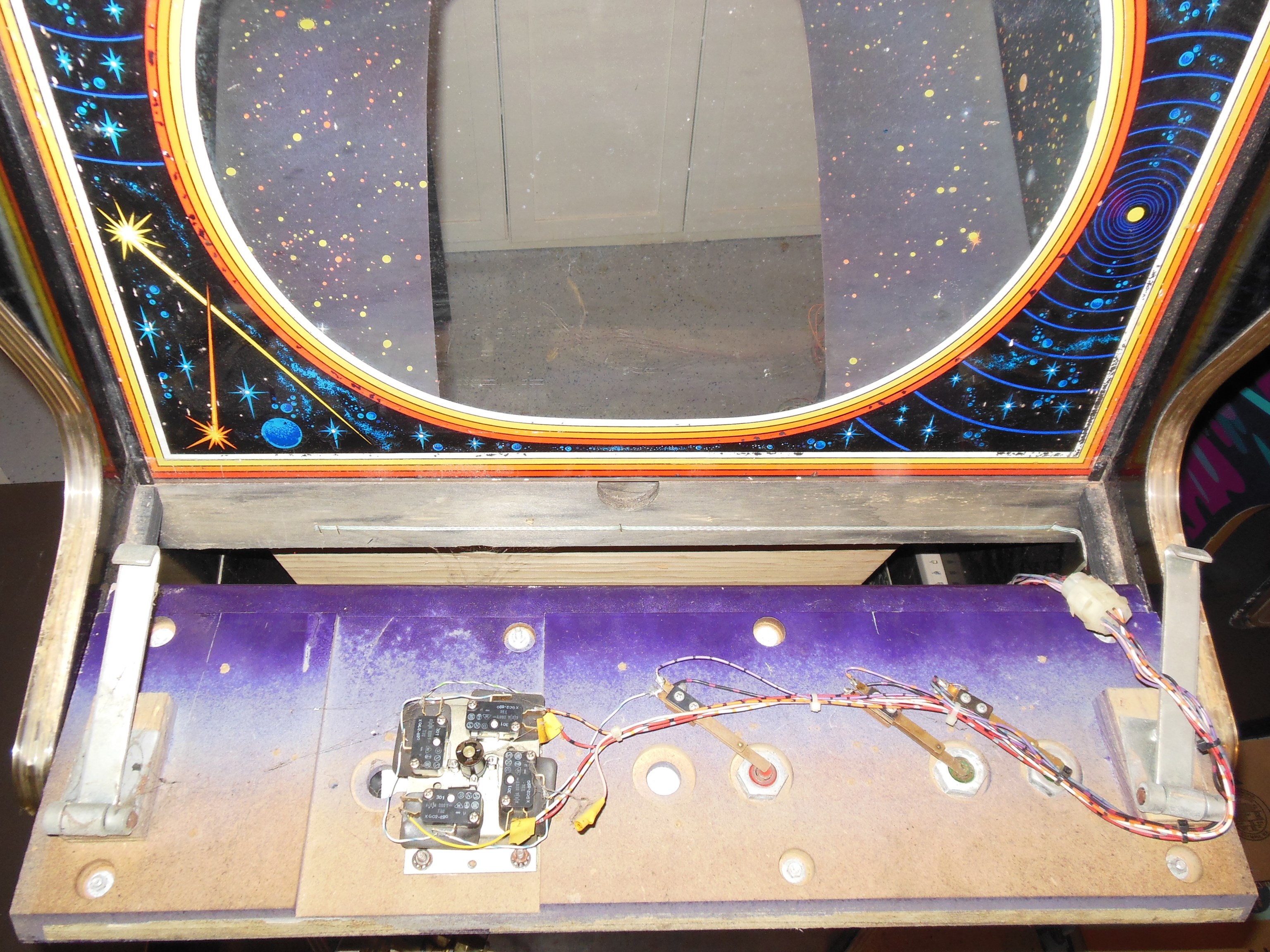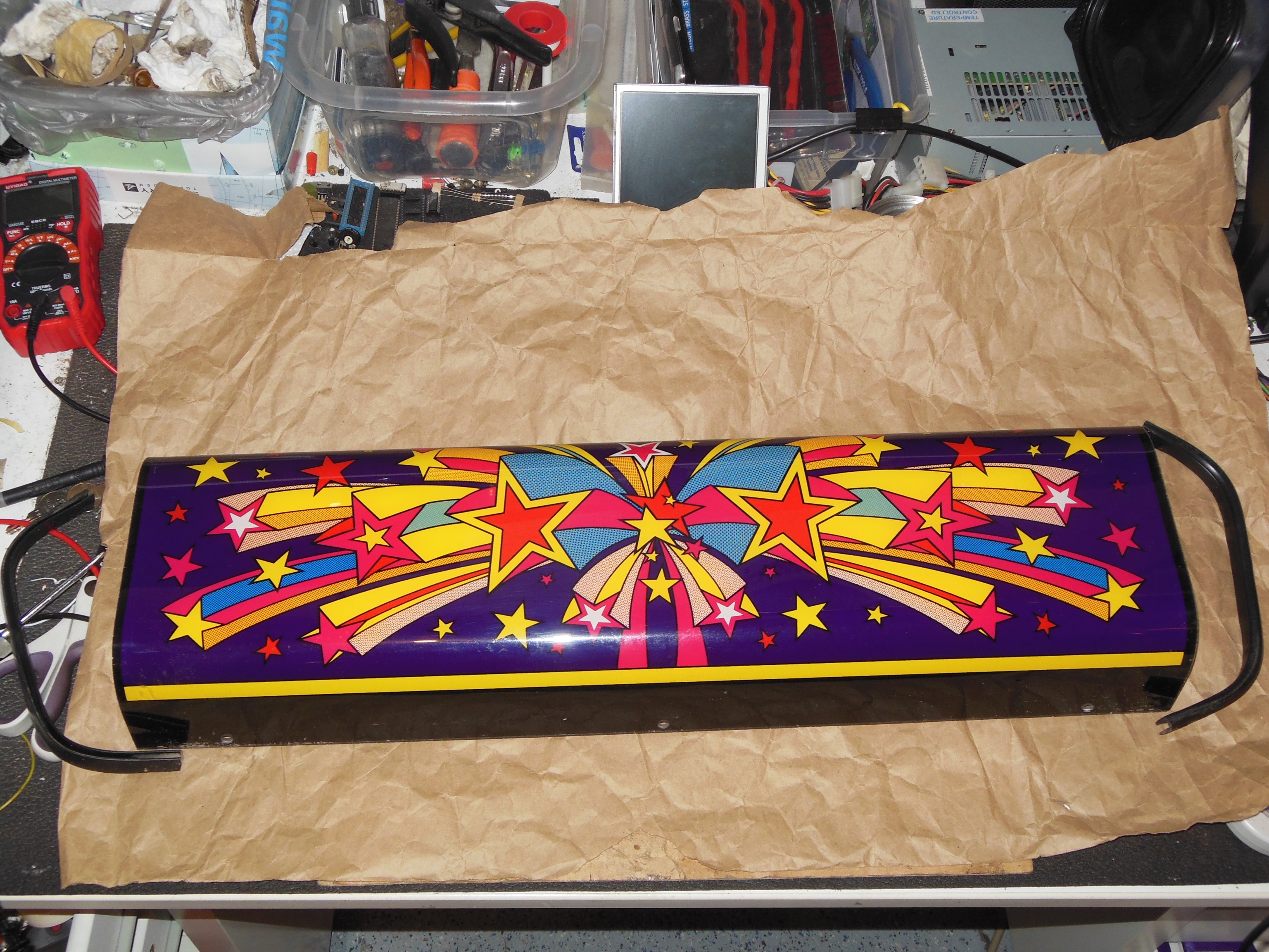 All the remaining wiring & power supply was removed from the woodgrain cabinet. The only cuts were for the coin counters and speaker.