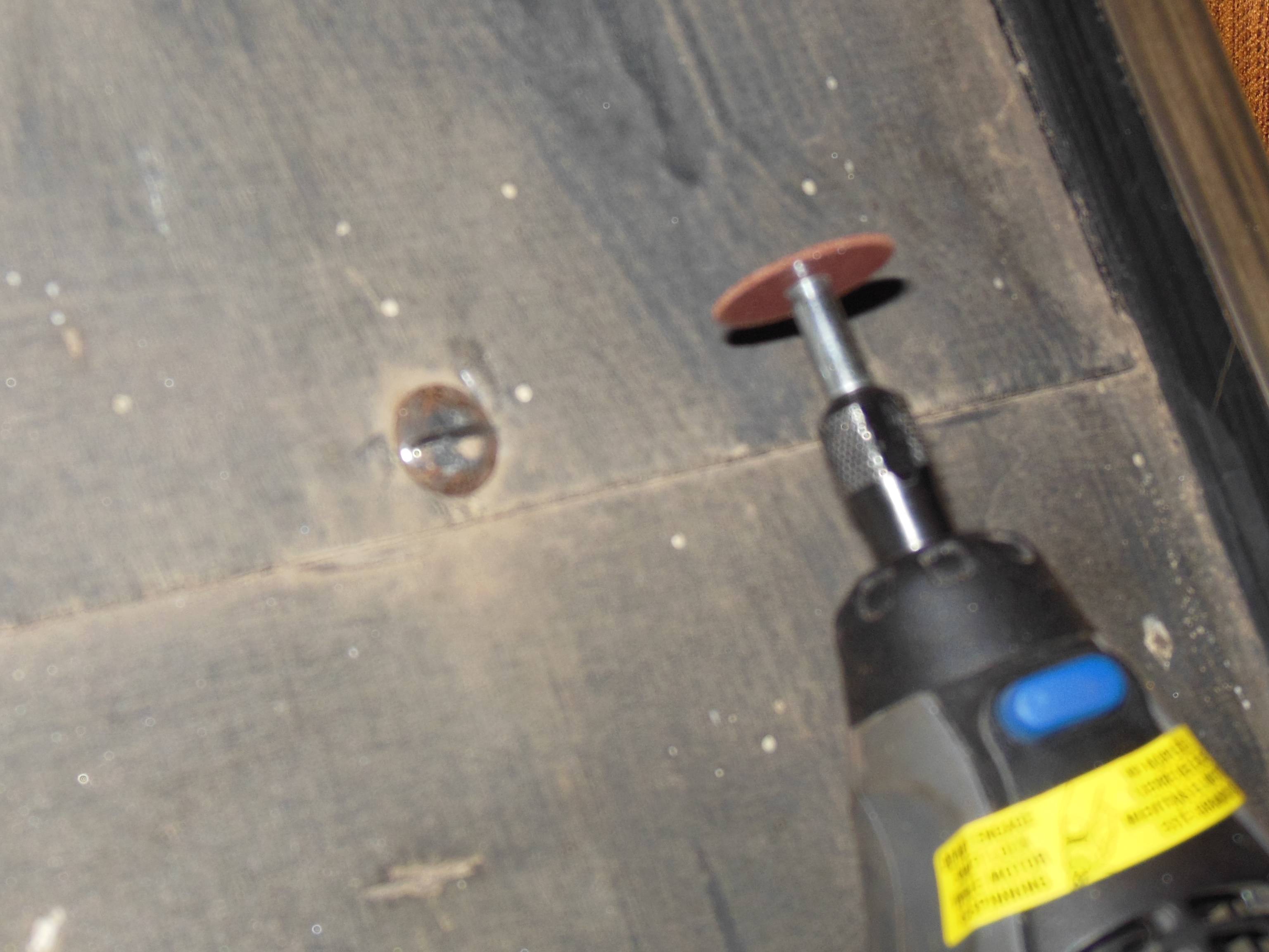 A Dremel was used to make a slot in one of the rusted rear hatch carriage bolts to undo it. The monitor surround was sagging and had liquid damage on one side. Thankfully, this was an early cabinet with the thick white plastic-coated surround that had stained but not disintegrated.