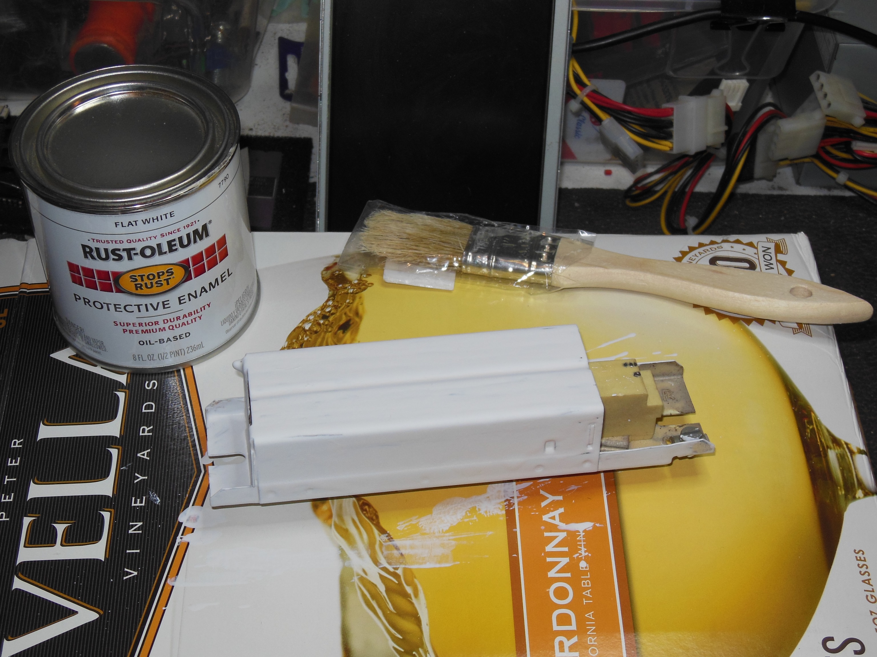After scraping off the flaking paint and sanding, the ballast was painted. Once dry, it was reinstalled into the marque light fixture.