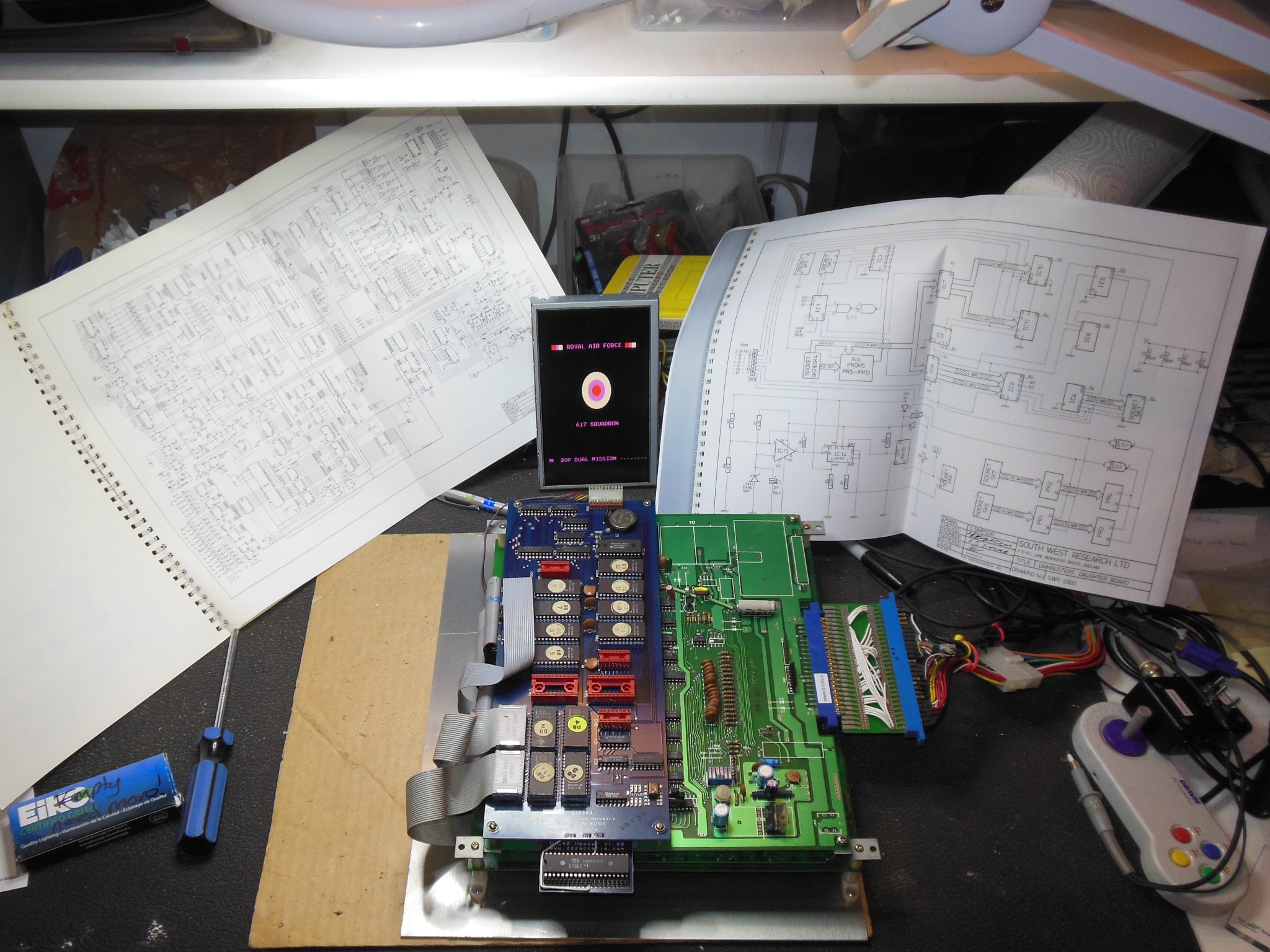 Dambusters has battery backed memory that had now run flat again. On the bench the game booted OK and the game ran but was unplayable due to corrupted game settings. The game PCB was set aside for now.