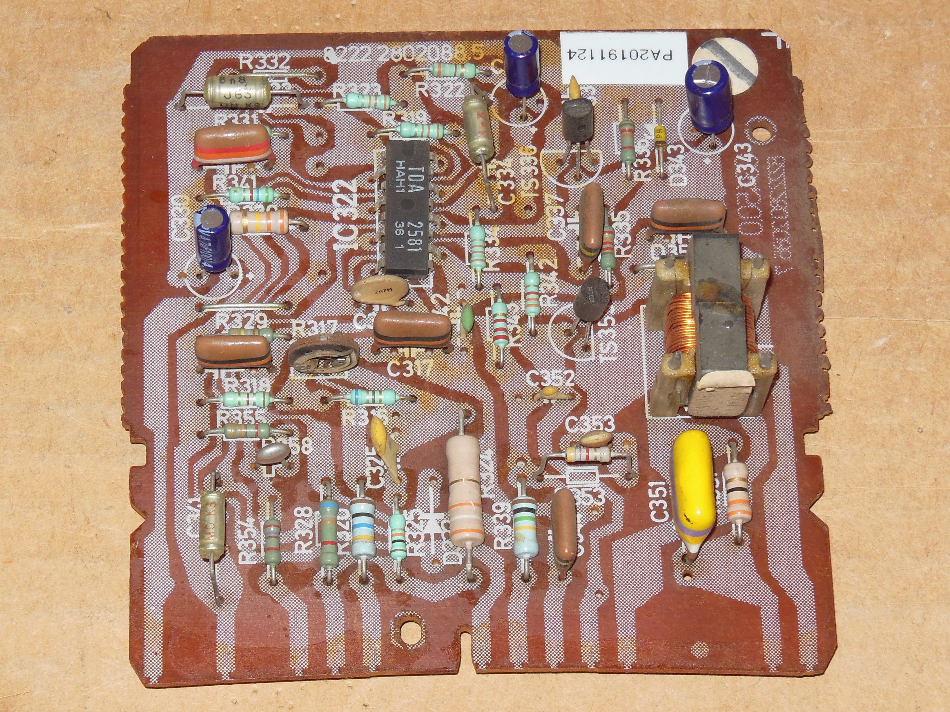 Less than two hours after the tripler was replaced the monitor was dead again. Checking the horizontal output transistor (HOT) T1562 (BU205) found no significant voltages. Unregulated 295VDC was present on the Bridge Rectifier PCB. Swapping in a replacement Supply Control PCB fixed the monitor and 130VDC was present on the HOT can. Replacing the TDA 2581 (and fitting a socket) on the original Supply Control PCB fixed it.
