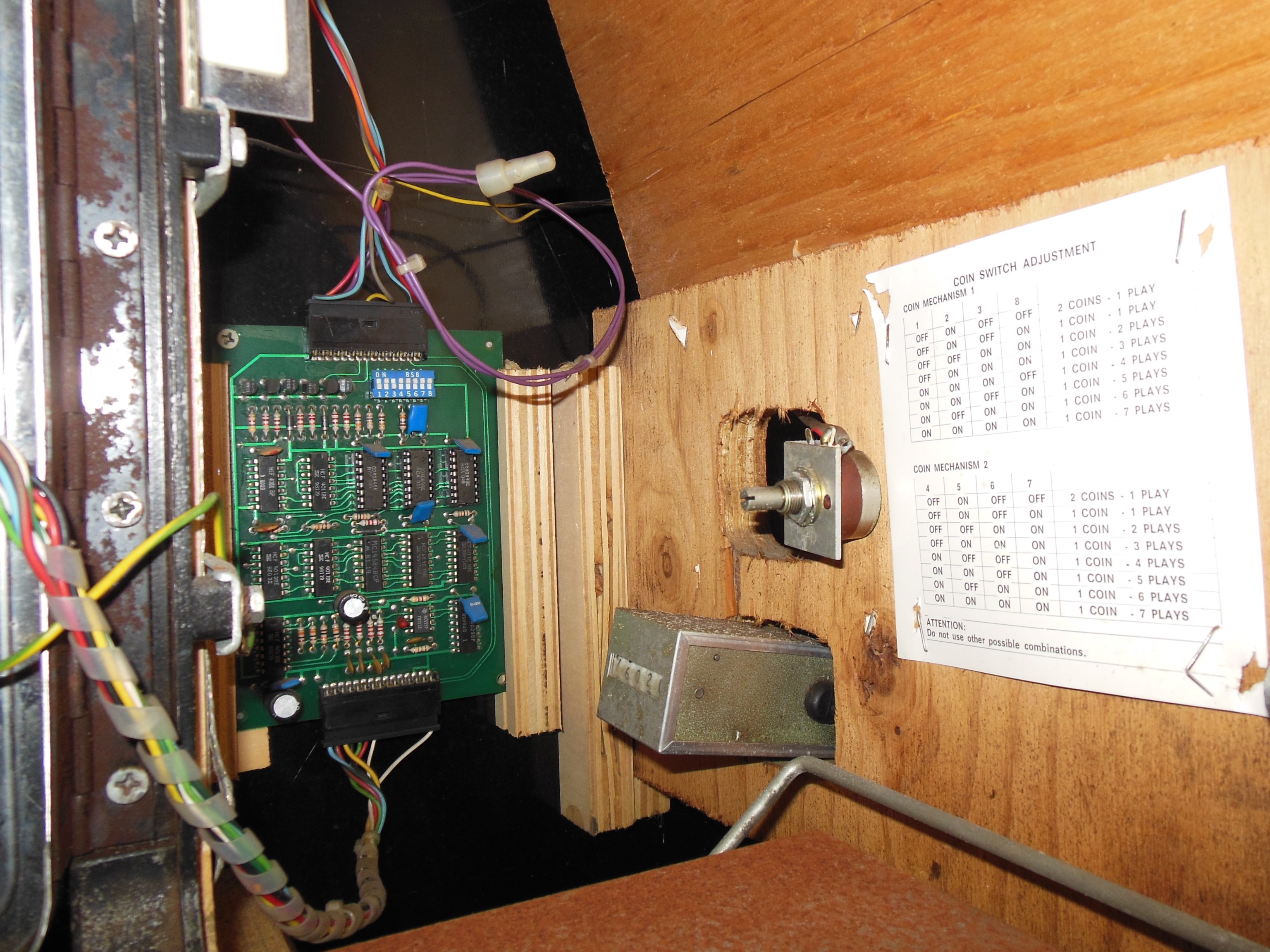All the coin door & credit wiring looked complete and original. An external volume control was fitted. Interestingly the credit switch settings sheet had been moved to the right to open up the 2nd coin counter slot for the volume control.