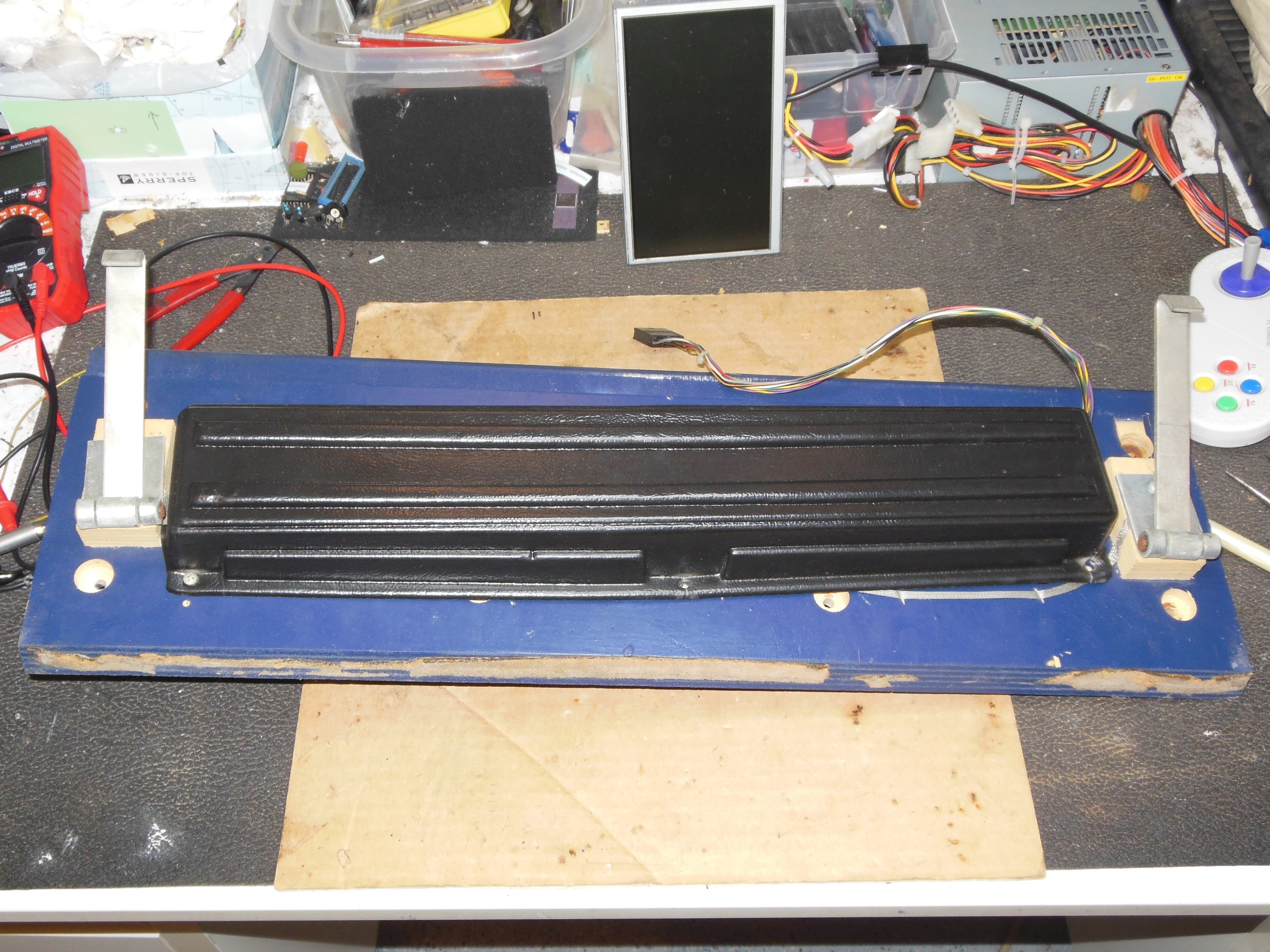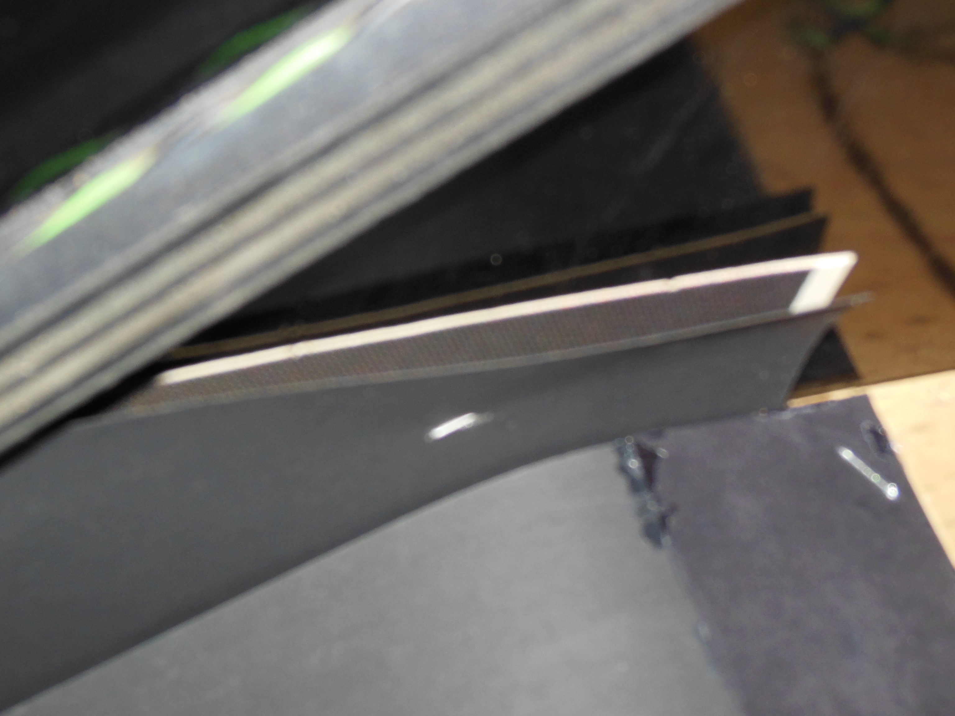 The plain black monitor surround wasn't as thick as the printed surrounds and even with top edge reinforcement was flimsy. Whilst checking the cabinet I noticed that the side walls still had printed artwork cards underneath - plain black card had been stapled over the star field card.