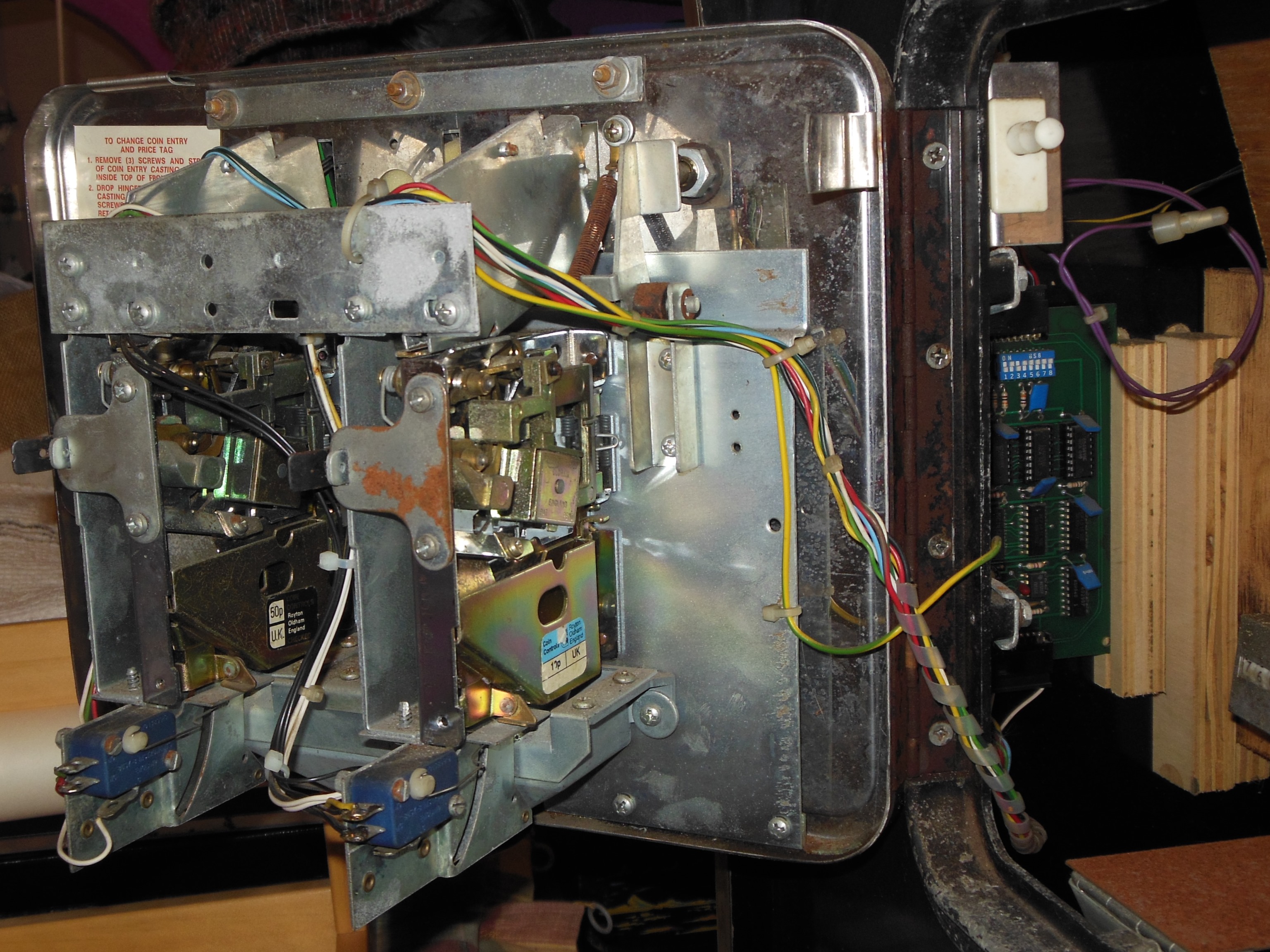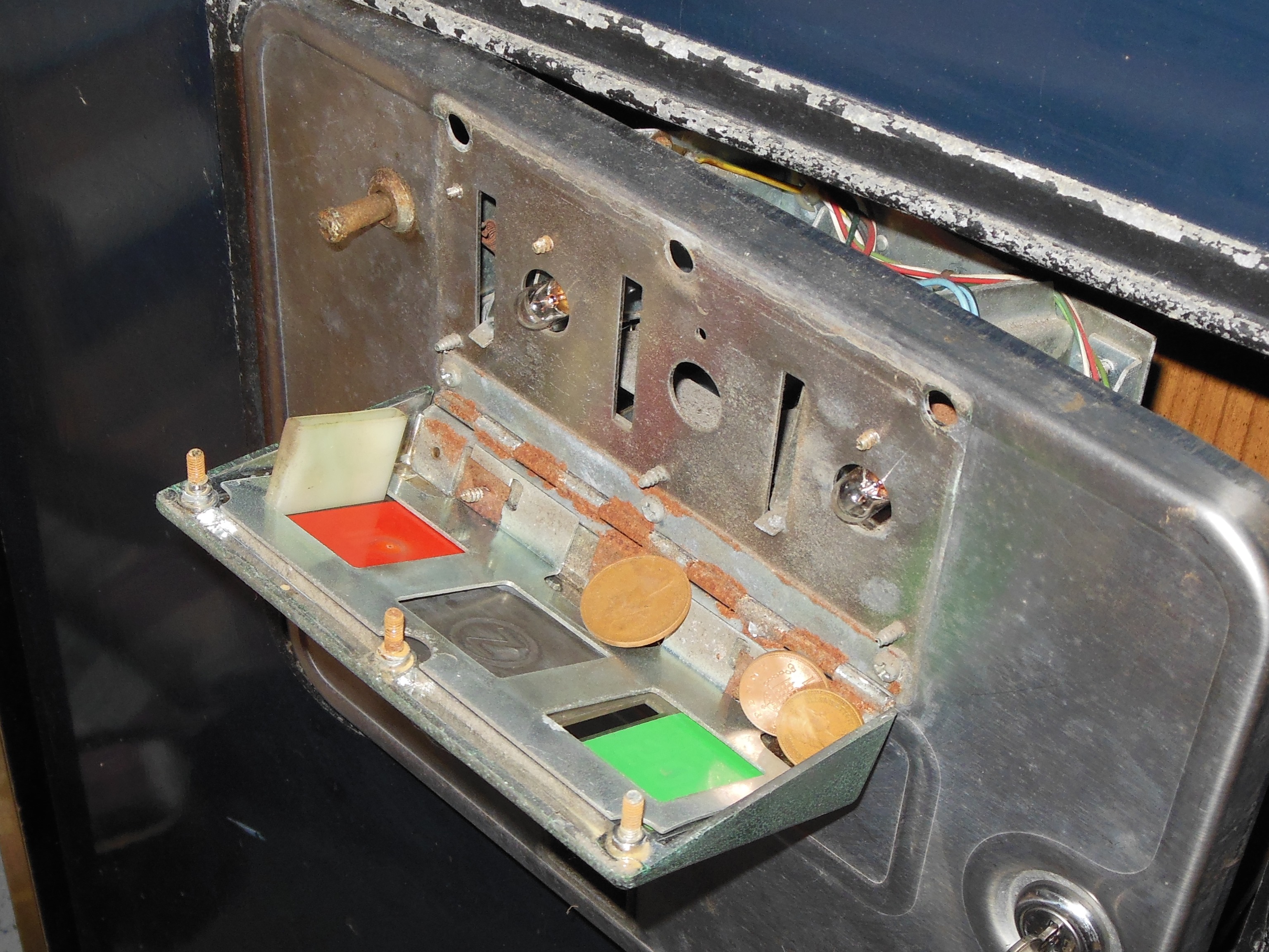 The centre slot "Z" blanking plate was flipped around to face out correctly that also found a collection of trapped coins, likely as a result of the missing guide on the right slot. Both coin bulbs were replaced and a credit button was fitted.