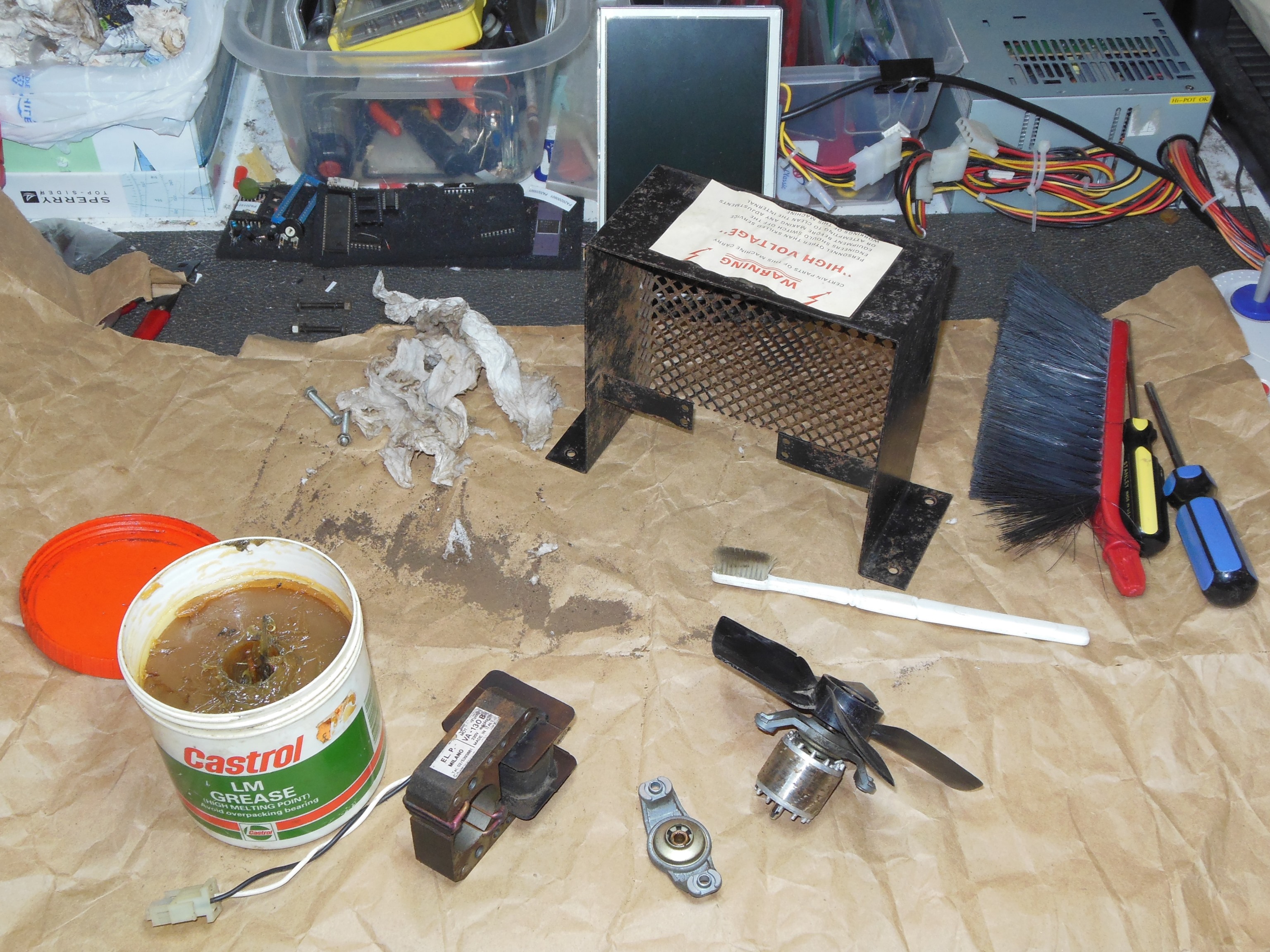 The lower power fans often still run OK but these later higher power ones, El. P. VA-130 B, are often worn out. A replacement fan assembly was built using an ADDA AA1282HB-AT and bench tested.
