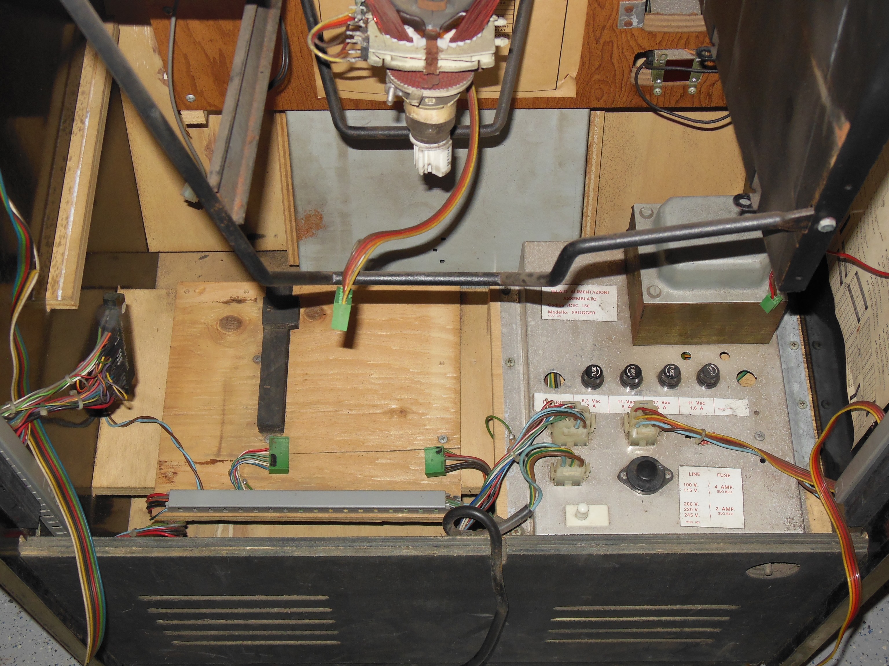 The power supply assemblies looked complete and original but very dusty. The power transformer block was labeled CEC-150 & Frogger. Comparing with Super Cobra CEC-137, one difference was that CEC-150 has a 5A 11 VAC fuse and CEC-137 a 4A 11 VAC fuse.