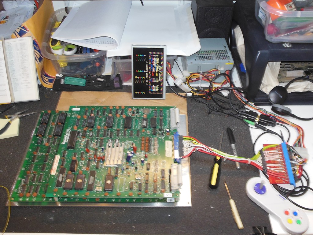 With both game PCB and power supply reinstalled in the cabinet the game was working properly again with no sound issues.