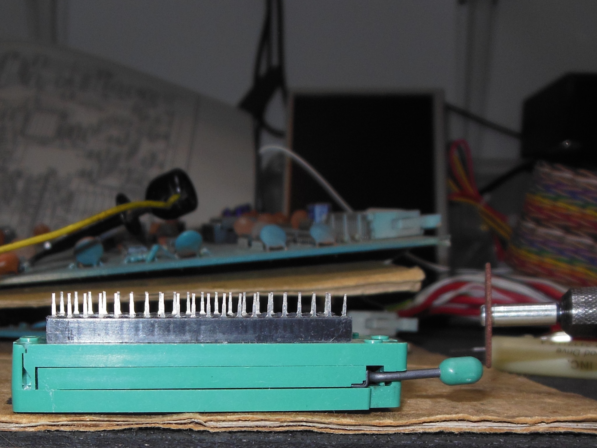 The oscillator (removed to accommodate the ICT) was zip tied in place since it was a little loose with only 4 pins to hold it in the socket.
