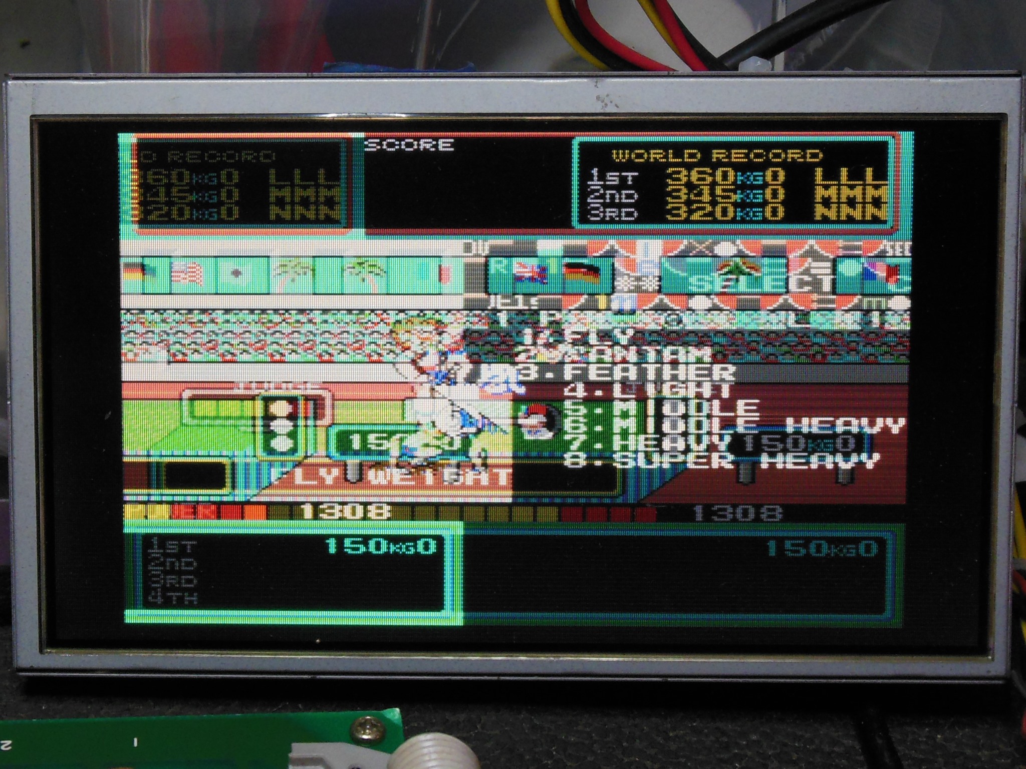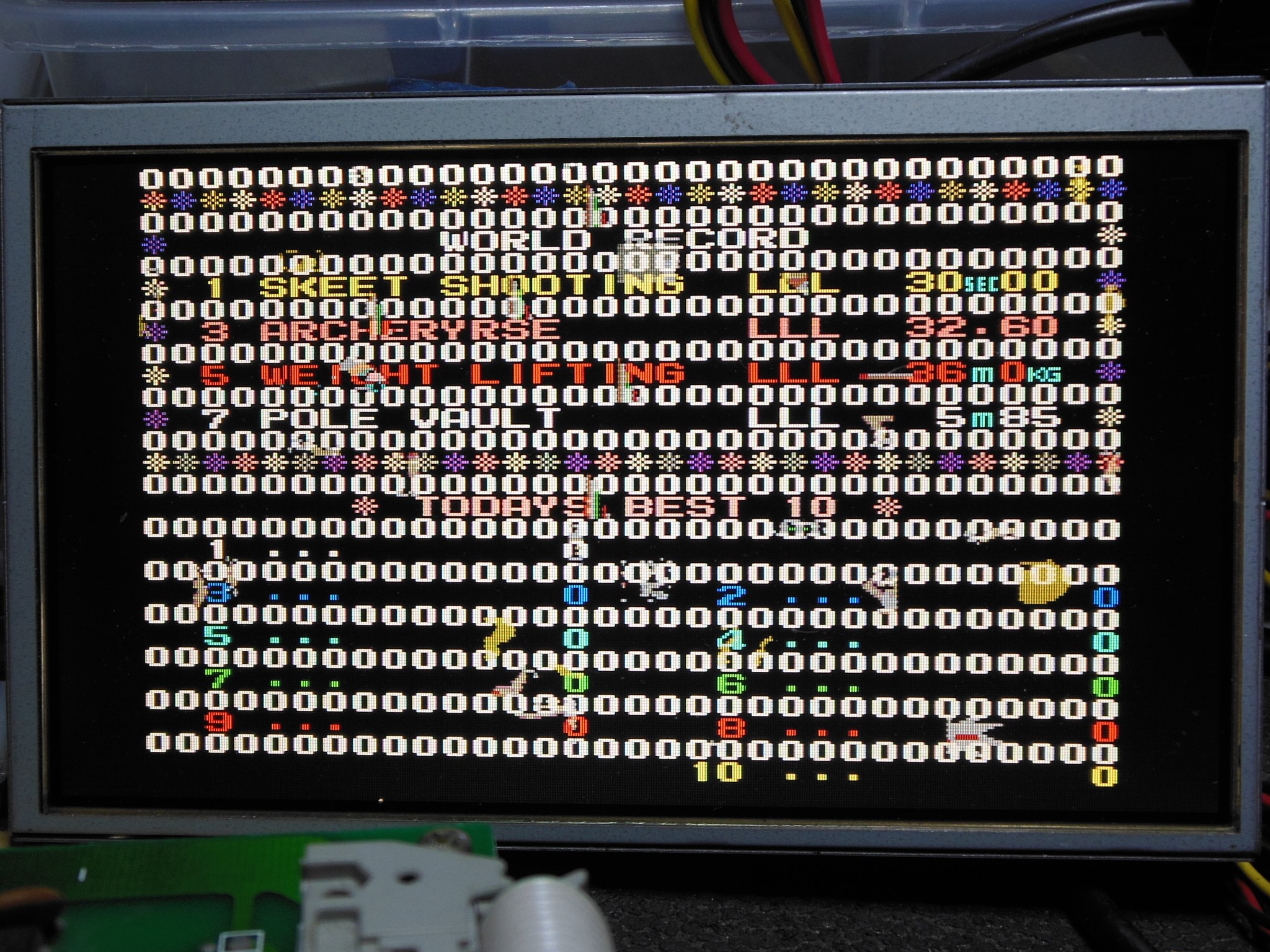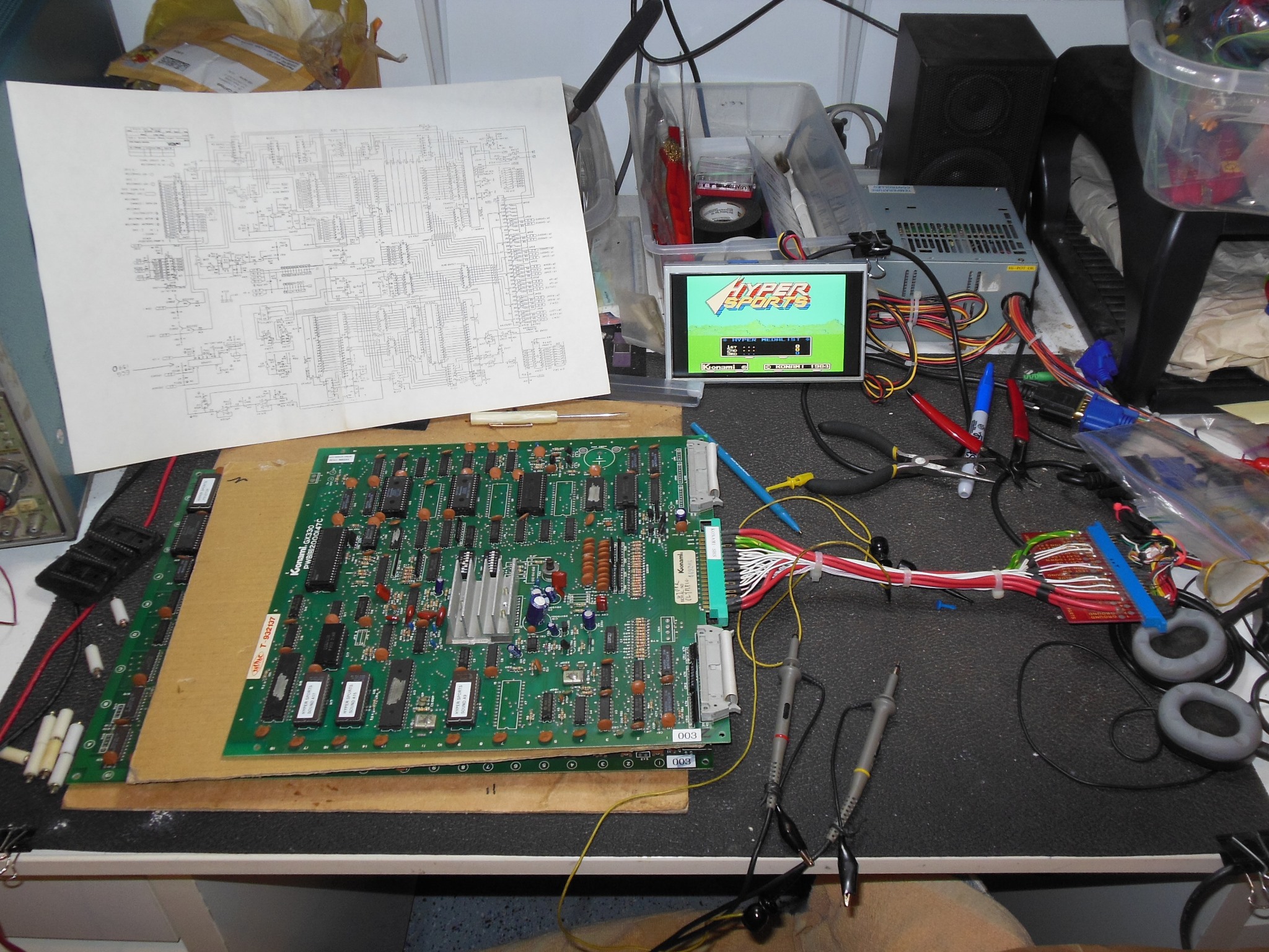 I'd already brought up the Konami K1 custom 6809E CPU on the Arduino ICT using Super Basketball (that supports either K1 & 6809E) in preparation for using it with Hyper Sports. Hyper Sports had the original socket that needed the ZIF adaptors small spacer bumps on its socket removed to fit all the way into Hyper Sports securely.