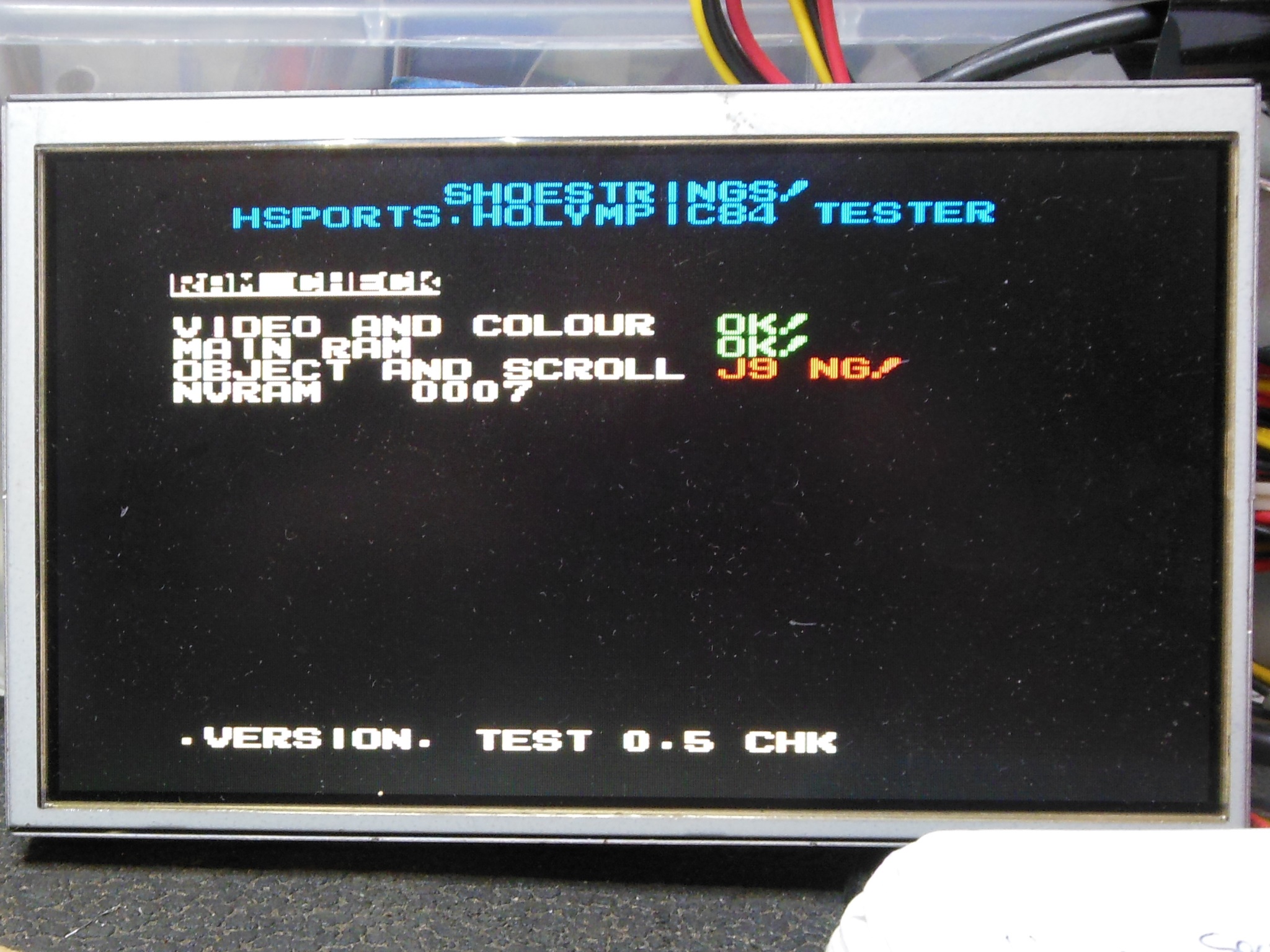 Moving on to the background colours, flexing the video PCB caused the colours to intermittently be correct. Reseating the background ROMS fixed the intermittent colours and no amount of flexing or pressing appeared to cause it to come back.