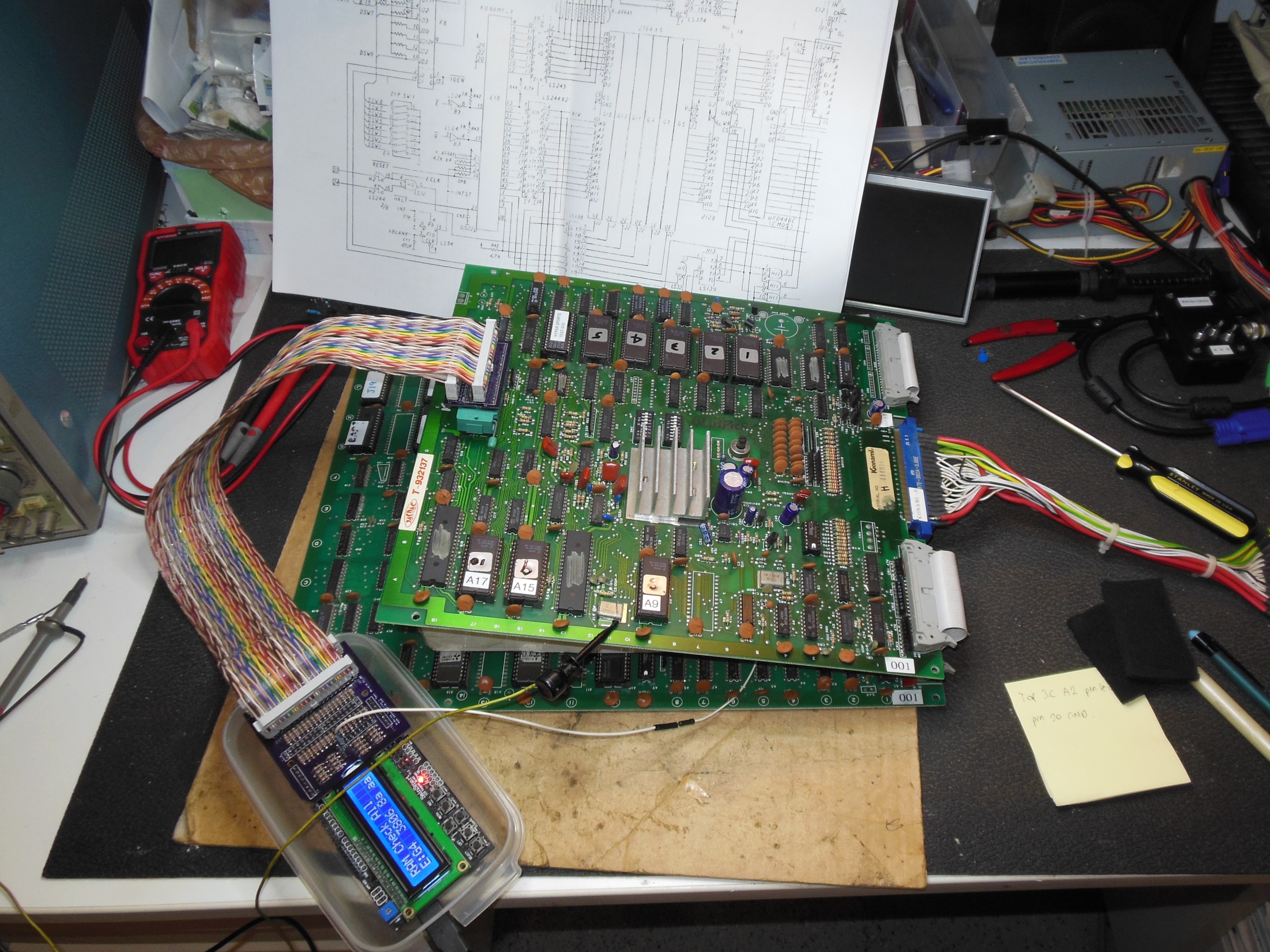 Replacing the Konami-1 CPU didn't change anything, and the Arduino ICT was setup. "ROM