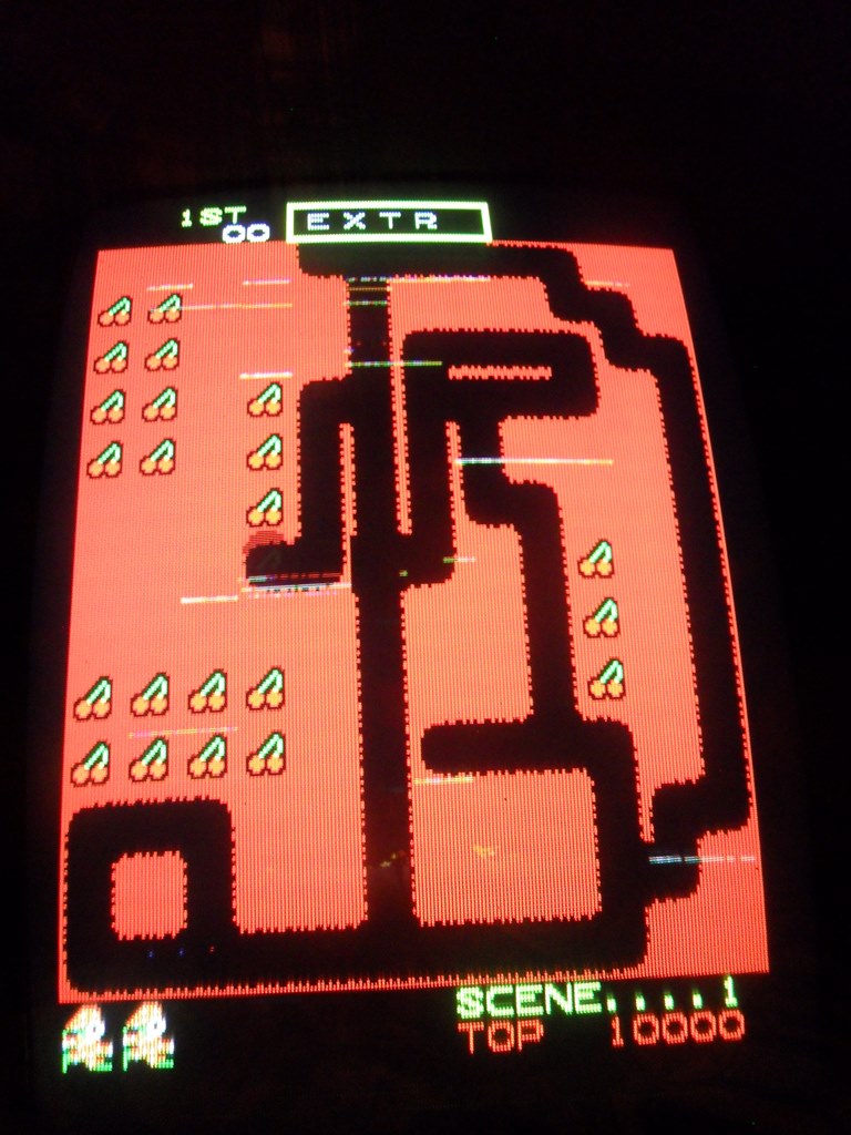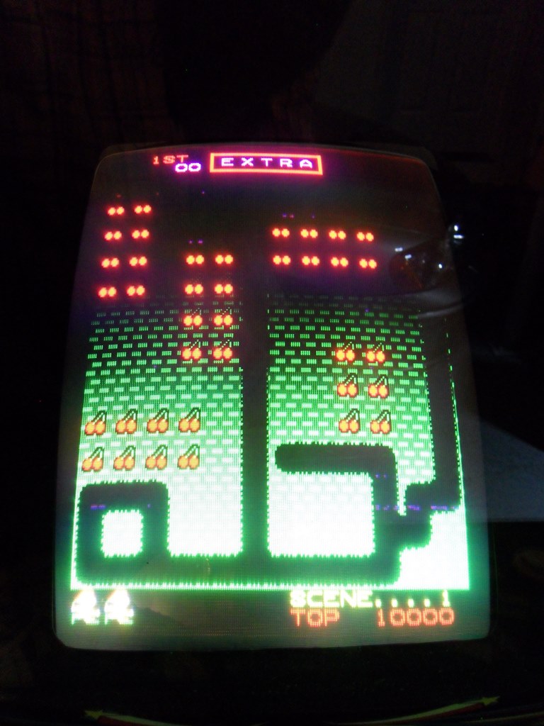 With the ITT configured chassis installed in the cabinet the picture looks good. The focus failure that occured with the Videocolor chassis was reproducible if the brightness and contrast are both maxed out, so likely the CRT does have an issue, but so far it's working fine with normal settings (ran for a few hours). The game board has a sprite fault that needs to be fixed.