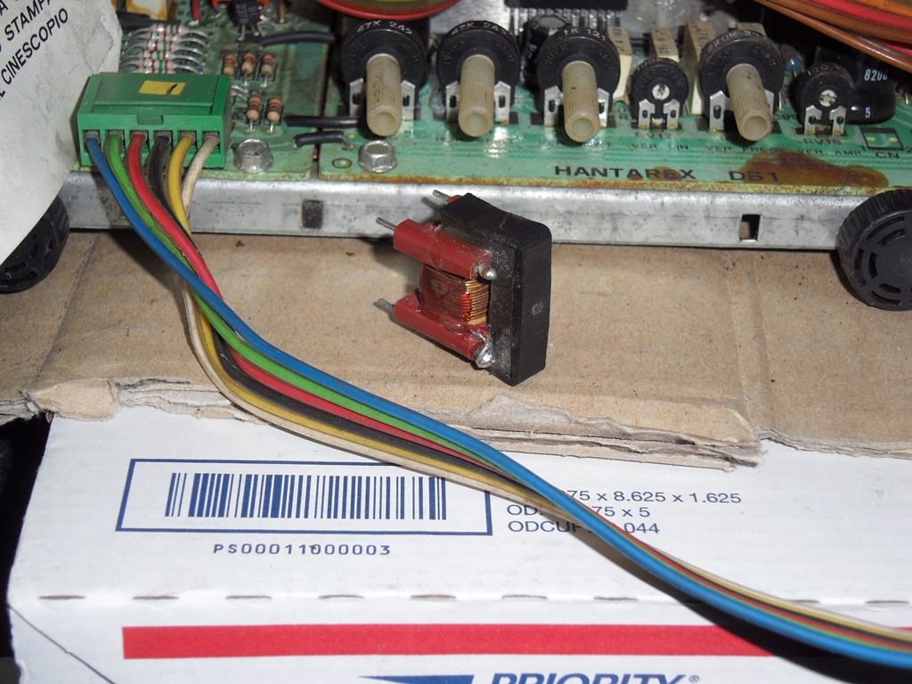 Digging through some boxes of salvaged chassis turned up an MTC-900 configured for an ITT CRT. The idea was that maybe the Videocolor configured chassis might not be a perfect fit for the ITT CRT in the cabinet (must have been swapped out some time in the past). One difference is that the ITT chassis has no East-West PCB and no connector or associated components for it on the main PCB. This ITT labeled chassis looked clean but was dead. Poking around with a meter showed the TDA 2593 had boot strap power and the scope showed oscillator output from it (changing it anyway made no difference). A monitor guru in the UK pointed me at a common problem of the transformer TH2 wires breaking off the posts and he was exactly right :) I popped it out, scraped off the wire and reattached it.