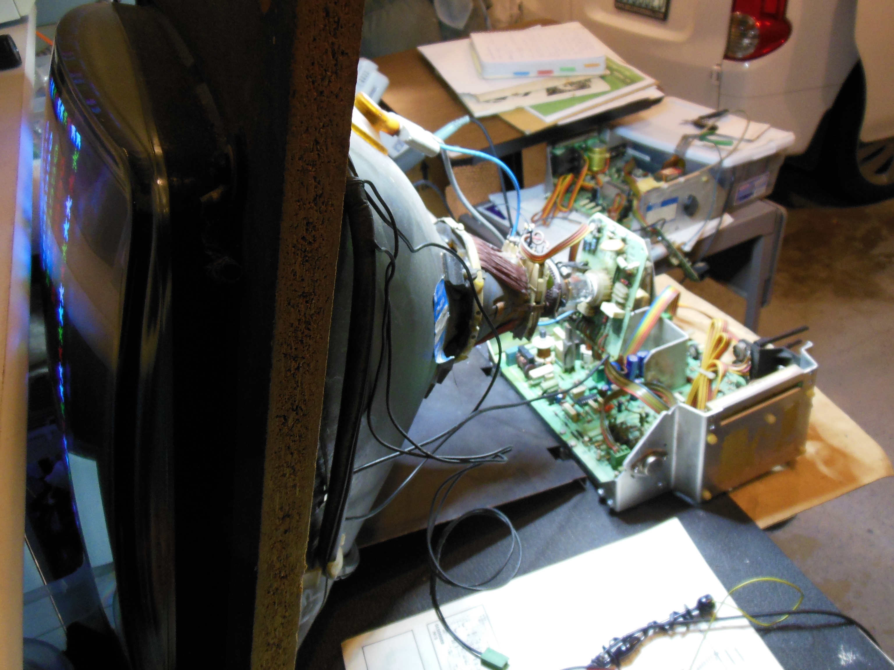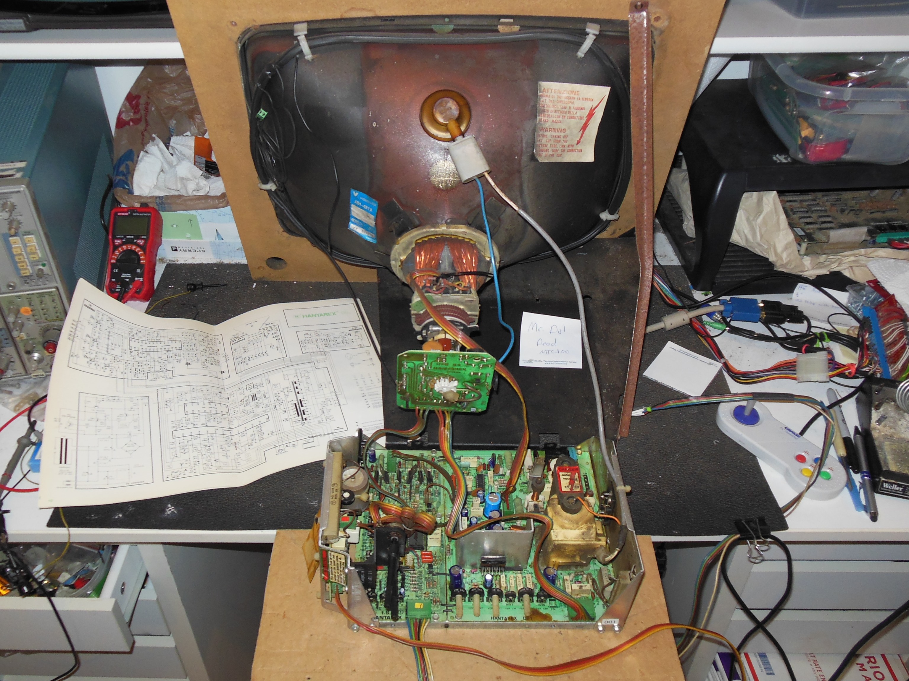 During pre-show testing the monitor failed with no picture, HV or neck glow. The monitor chassis was removed for repair.