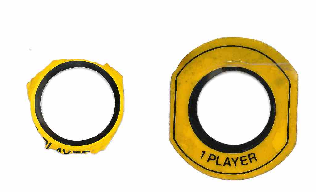 The control panel overlay was in good condition but the button collars were missing on the fire buttons and the player 2 collar was mostly peeled away. The player 1 collar was still intact, thankfully, to use as a reference to make replacements for the others.