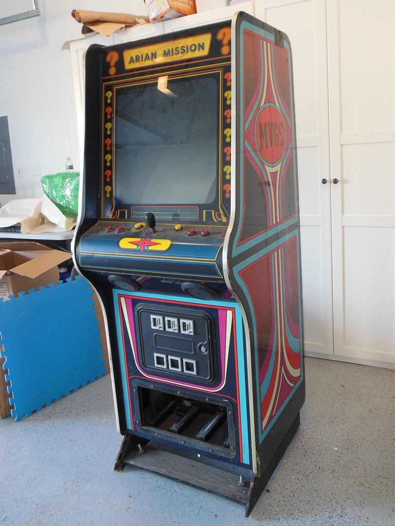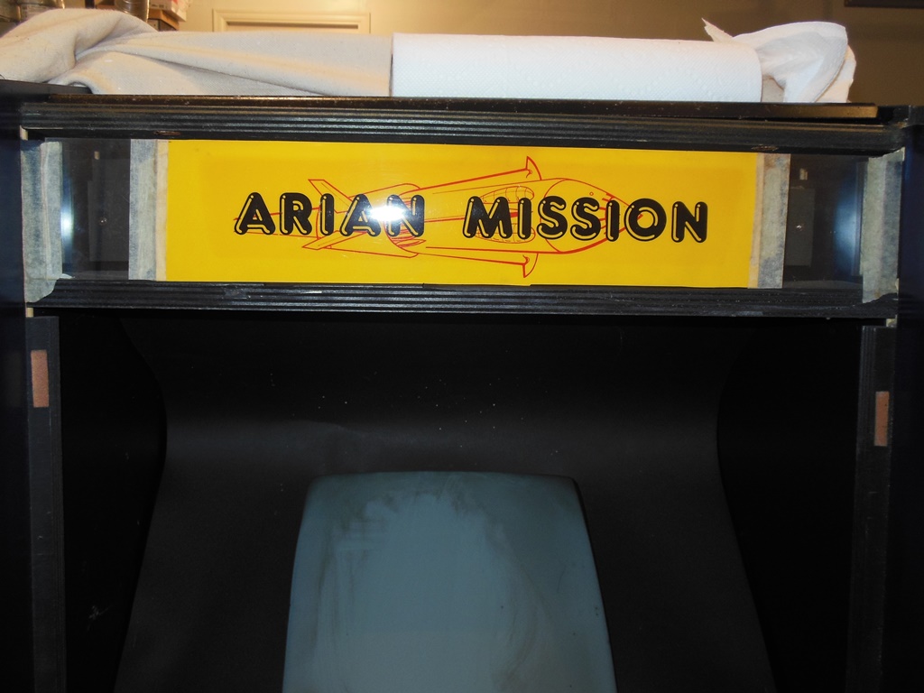 The back had a very nice original hand-written Associated Leisure label proclaiming the Arian Mission configuration of the cabinet. These were manufactured within a couple of years of JAMMA becoming standard so I consider it a rare find of an MVGS still in its original game configuration.