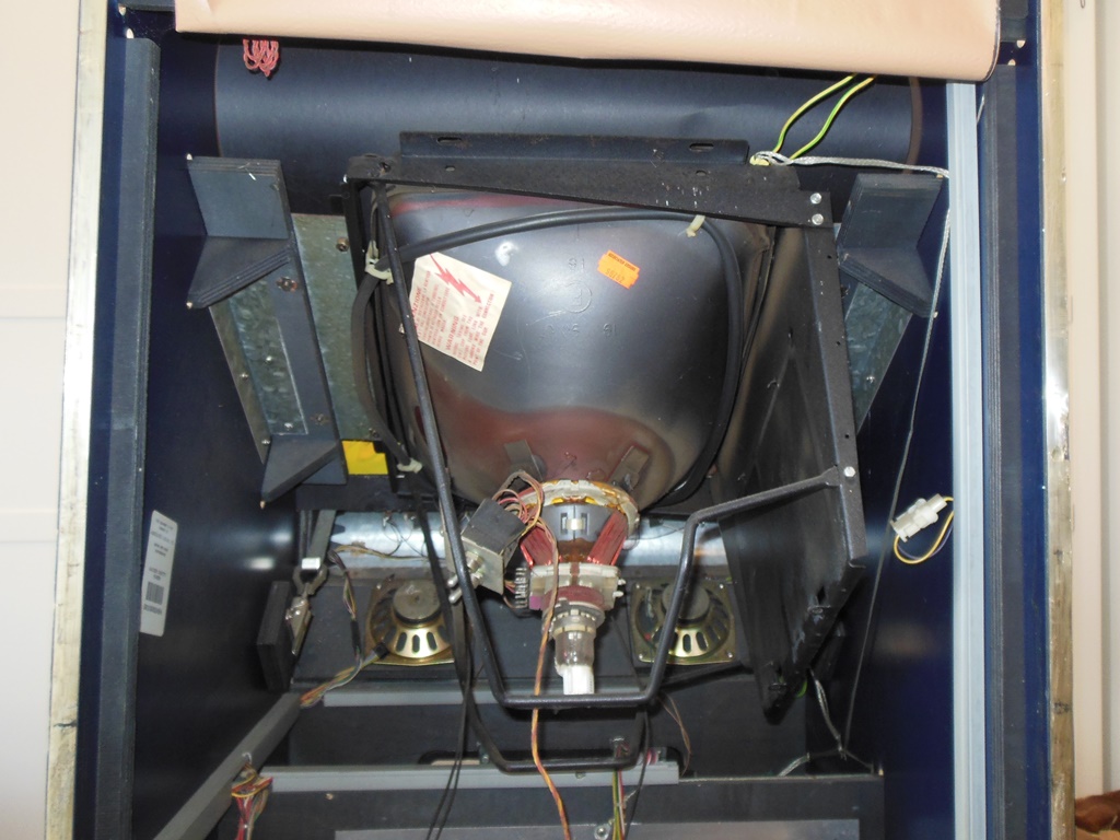 Clearly the monitor was missing the chassis, that would have been a Hantarex MTC-900E. Also note that the monitor has toggle switches fitted to allow the yoke coils to be swapped to accommodate flipping the picture. It looked like this was a fairly neat modification so I suspect it may have been either a Zaccaria factory or Associated Leisure modification. I choose to leave this as is.