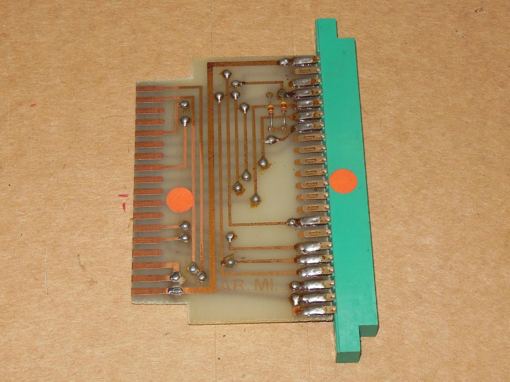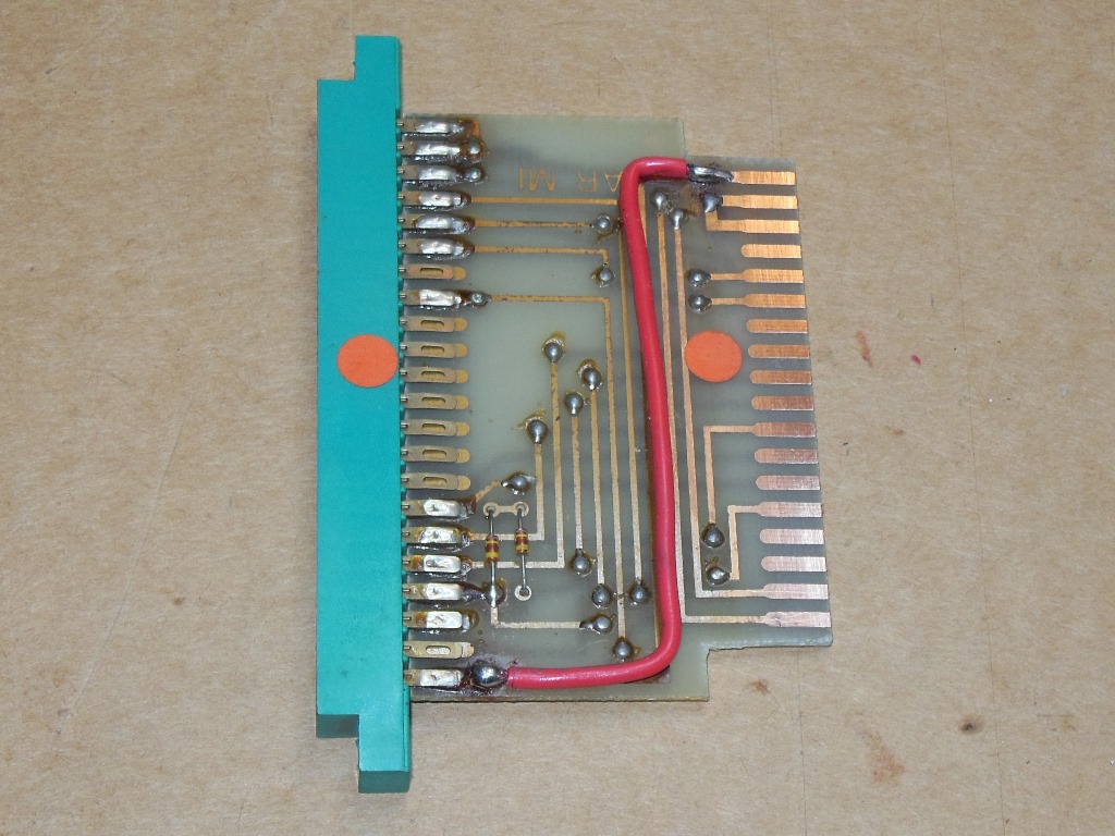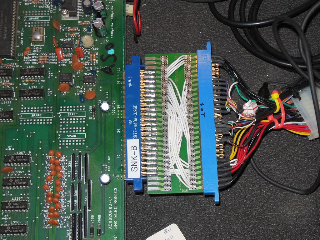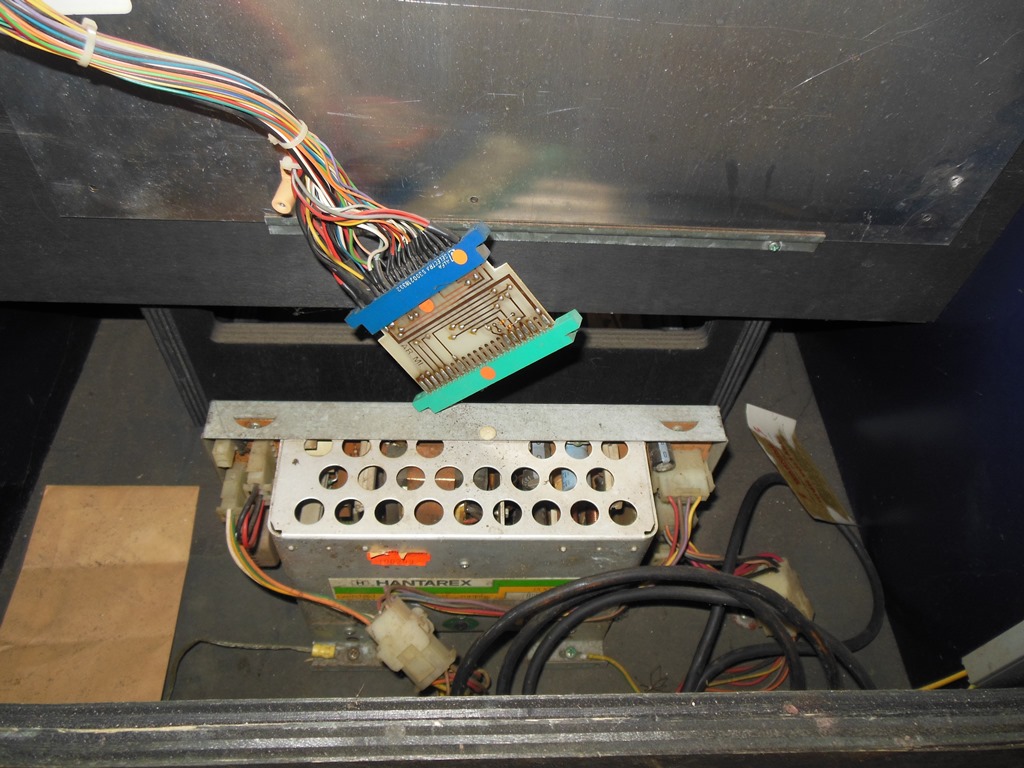 Also missing was the SNK Arian Mission game PCB. The Zaccaria Universal cabinets were built wired for the Konami wiring standard, so present in this cabinet is an adaptor PCB that converts from Konami to SNK. That the adaptor is still present saved me the task of having to build an adaptor myself :)