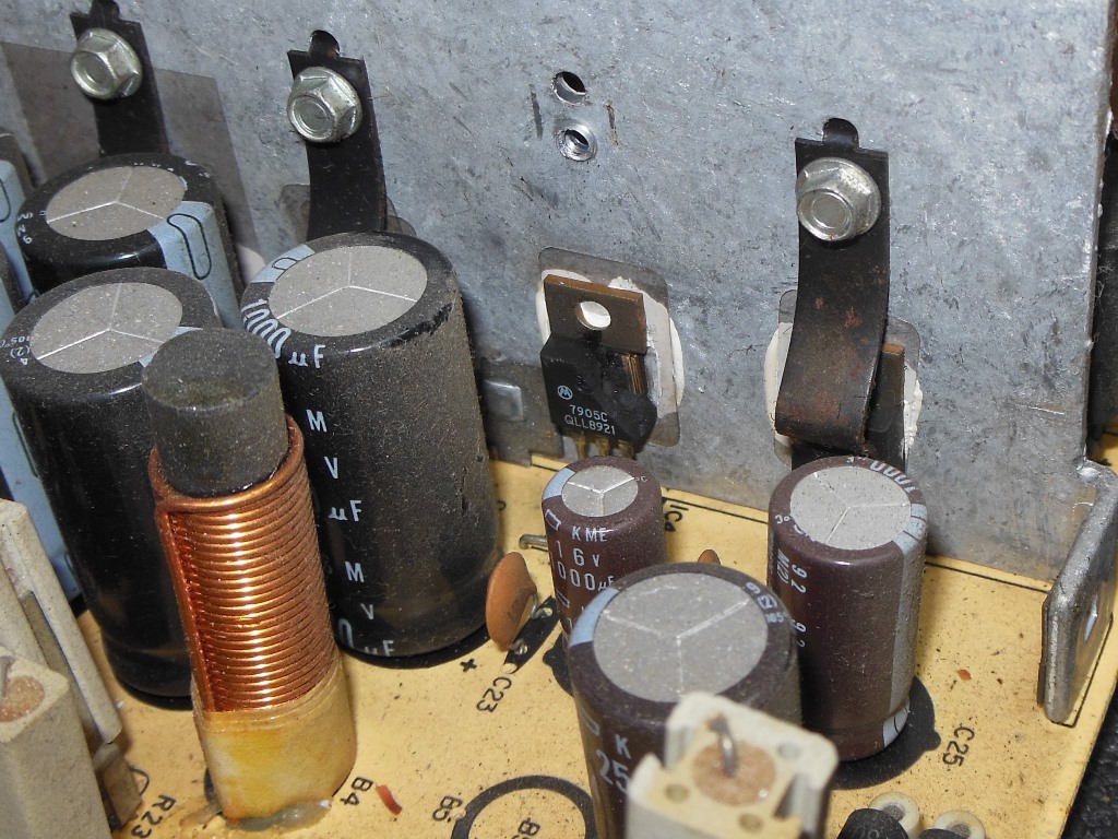Testing the Hantarex US250 on the bench with the dummy load revealed that it was mostly working properly. The only problem seemed to be a missing -5V supply that was quickly isolated to a very obvious blown 7905 -5V regulator. Replacing the regulator fixed the -5V and the power supply was now fully working.
