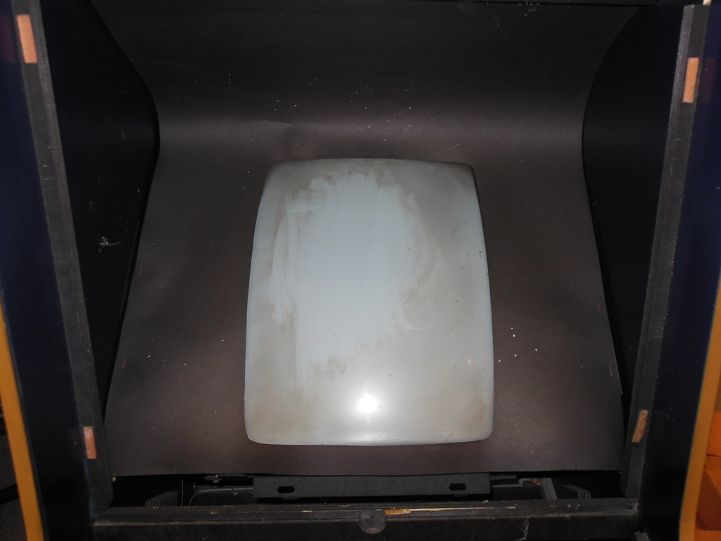 The surround was in pretty good condition and was removed for cleaning and flattening out to reform it. The CRT had very little nicotine, just dust & dirt, so cleaning it was straight forward.