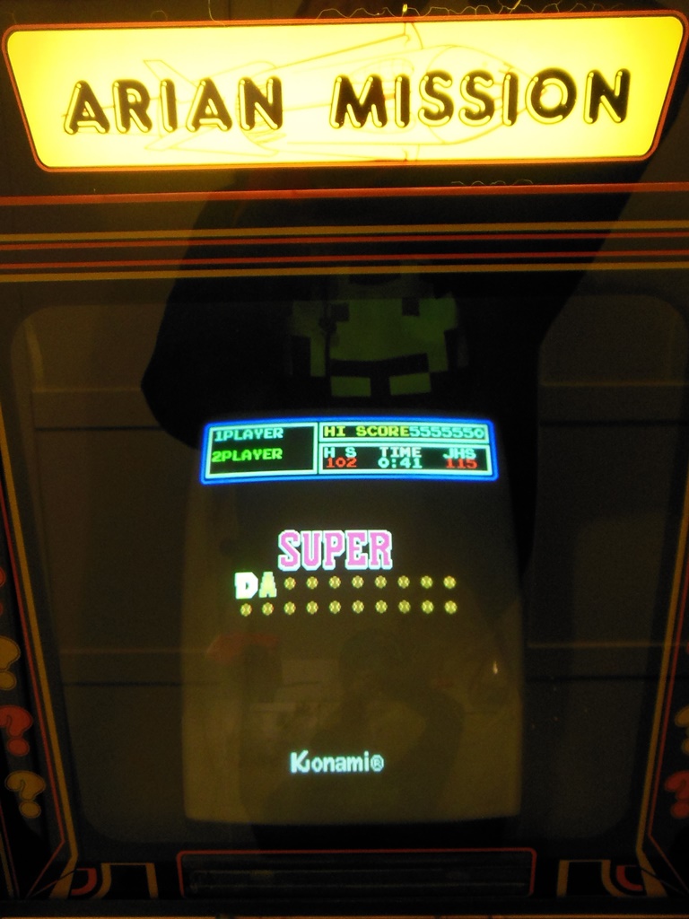 On first assembly with the Arian Mission PCB the first problem was that the game PCB had bad graphics in cab. Investigation revealed that the +5V power rail was only 4.6V at the game PCB, even with the Hantarex US250 +5V pot turned up all the way. Poking around with a multi-meter found that a large portion of the voltage drop was through the SNK to Konami adaptor (the Konami standard does not allocate many pins for power, a known design limitation). Closer examination suggested that the actual track on the adaptor was the source of most of the drop. Fitting an additional thicker power wire in parallel with the adaptor track eliminated a chunk of drop that allowed the +5V to enter the PCB at 5.05V. The game ran fine after the modification with improved graphics.