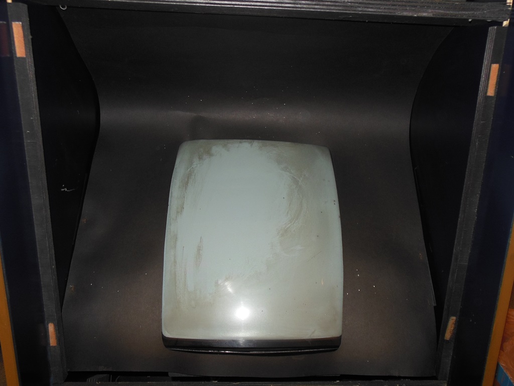 The monitor surround was a little droopy with some odd creases. There were also some white paint splashes on it that I couldn't tell for sure if they were factory "stars" or just odd paint splashes so I left them as is.