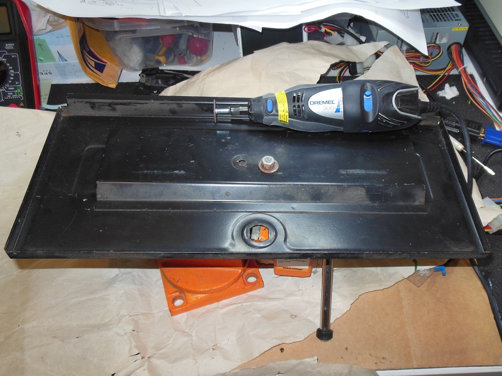 The original foot rest base was in poor condition. The foot rest itself (not shown) was swollen and falling apart. The base cross bar was split, the two sides swollen and crumbling. From the underside it was clear that one side of the base had been replaced at some point (one side was MDF and the other plywood). I decided to remove the foot rest base entirely and fit casters as usual.