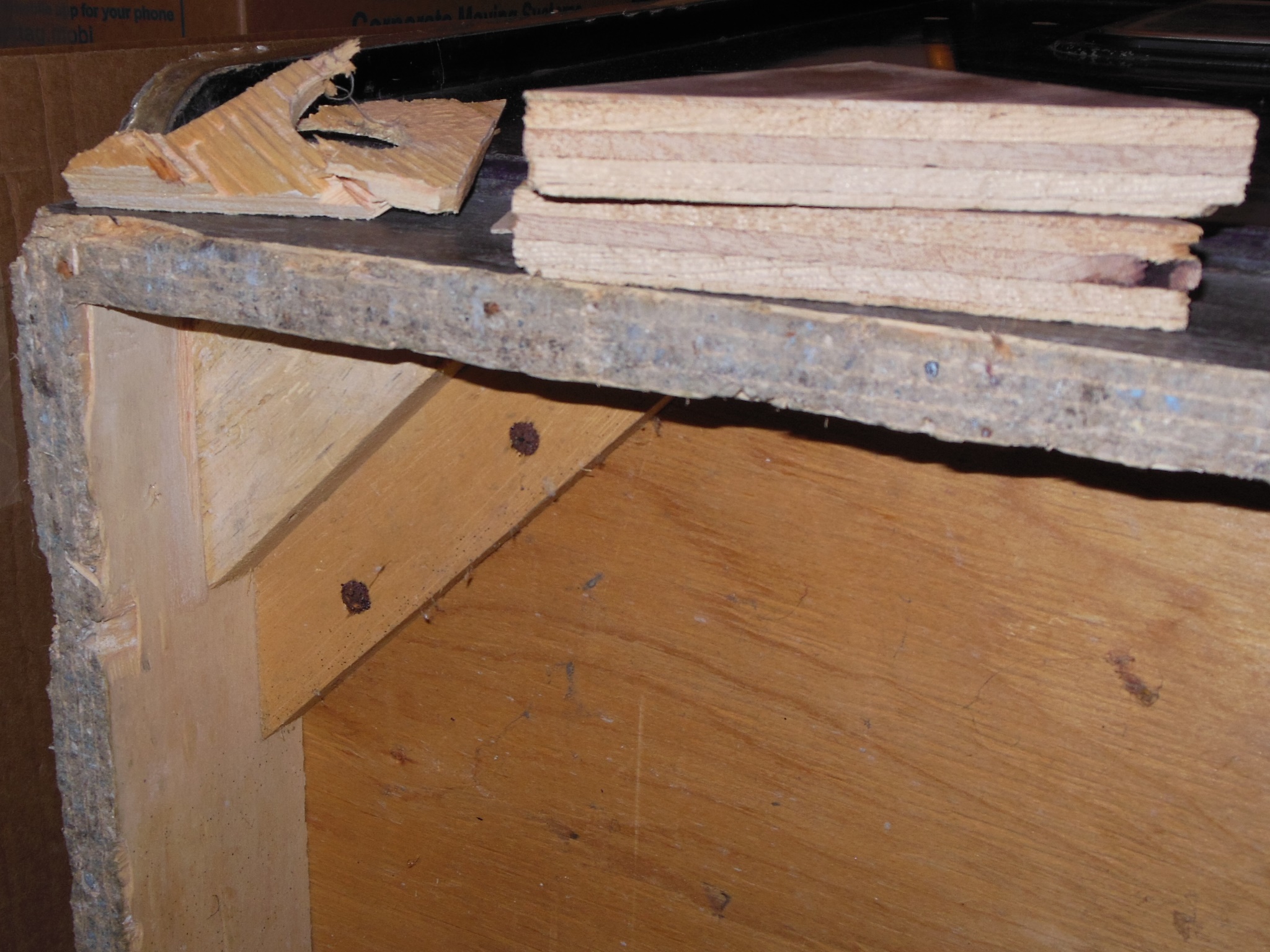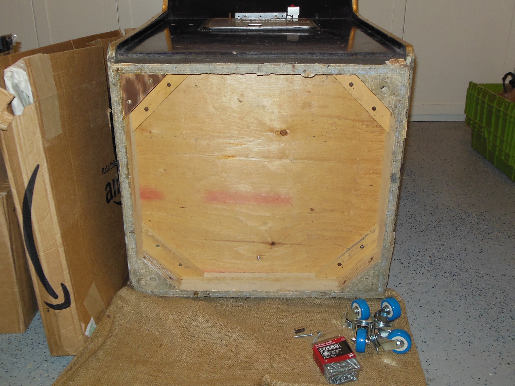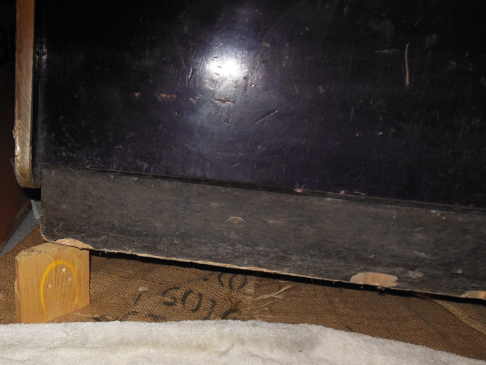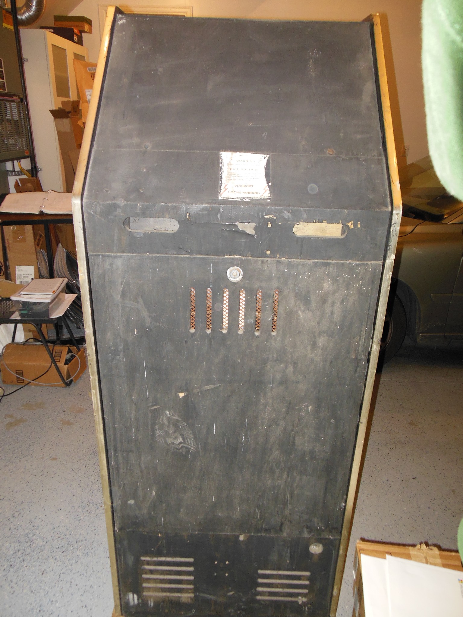 Externally the cabinet looked complete and original except for missing all its feet and one corner has the foot block broken off. The back door was originally missing from all four of the cabinets as found and I borrowed a back door from another cabinet for it for now.