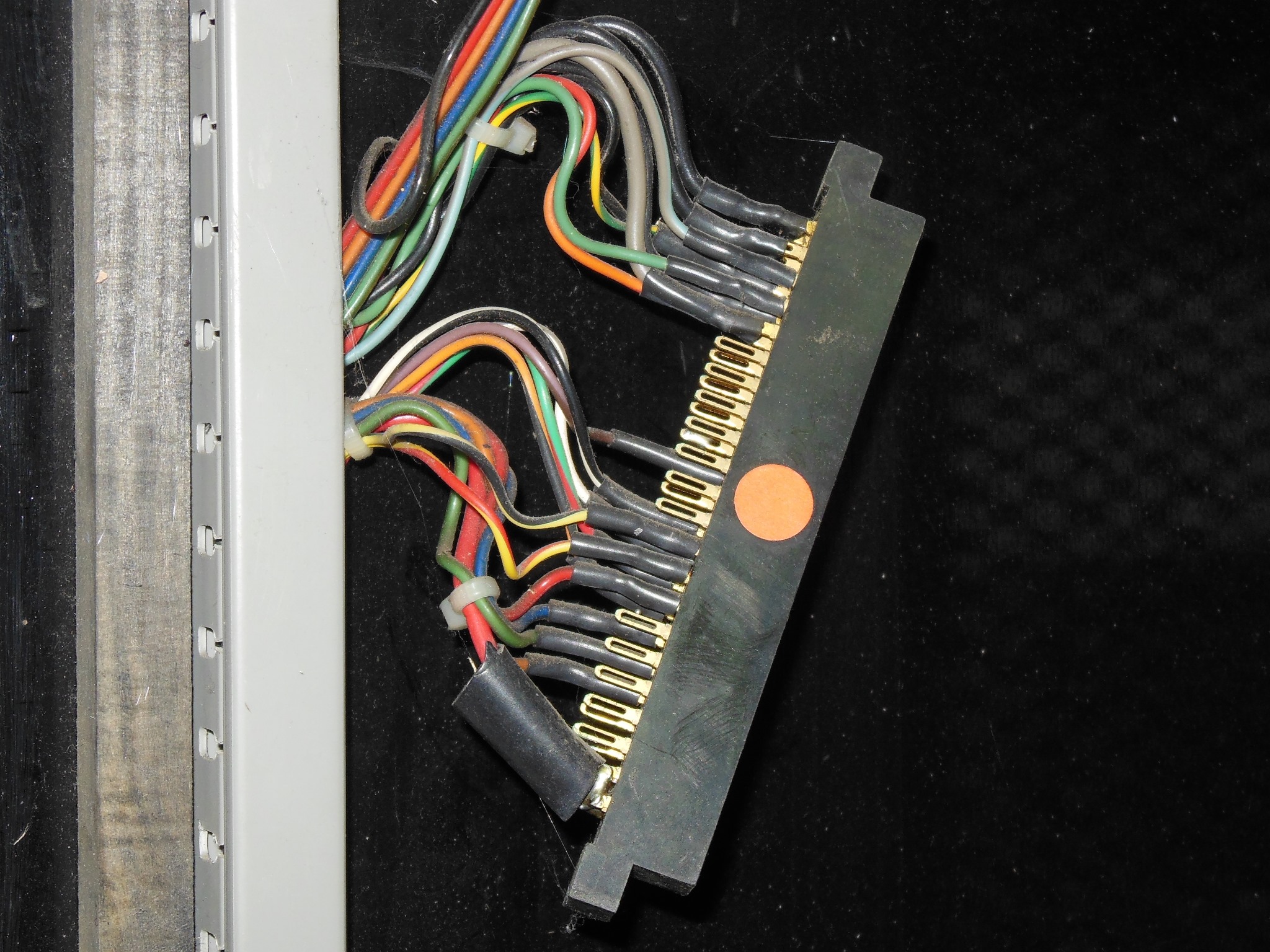 None of the original four cabinets contained the game PCB but the edge connector looked original and unmodified on this one. From Puck Man PCBs that have cropped up on eBay with Zaccaria serial number labels I suspect it would have had an anonymous full size DC version of the Namco PCB.
