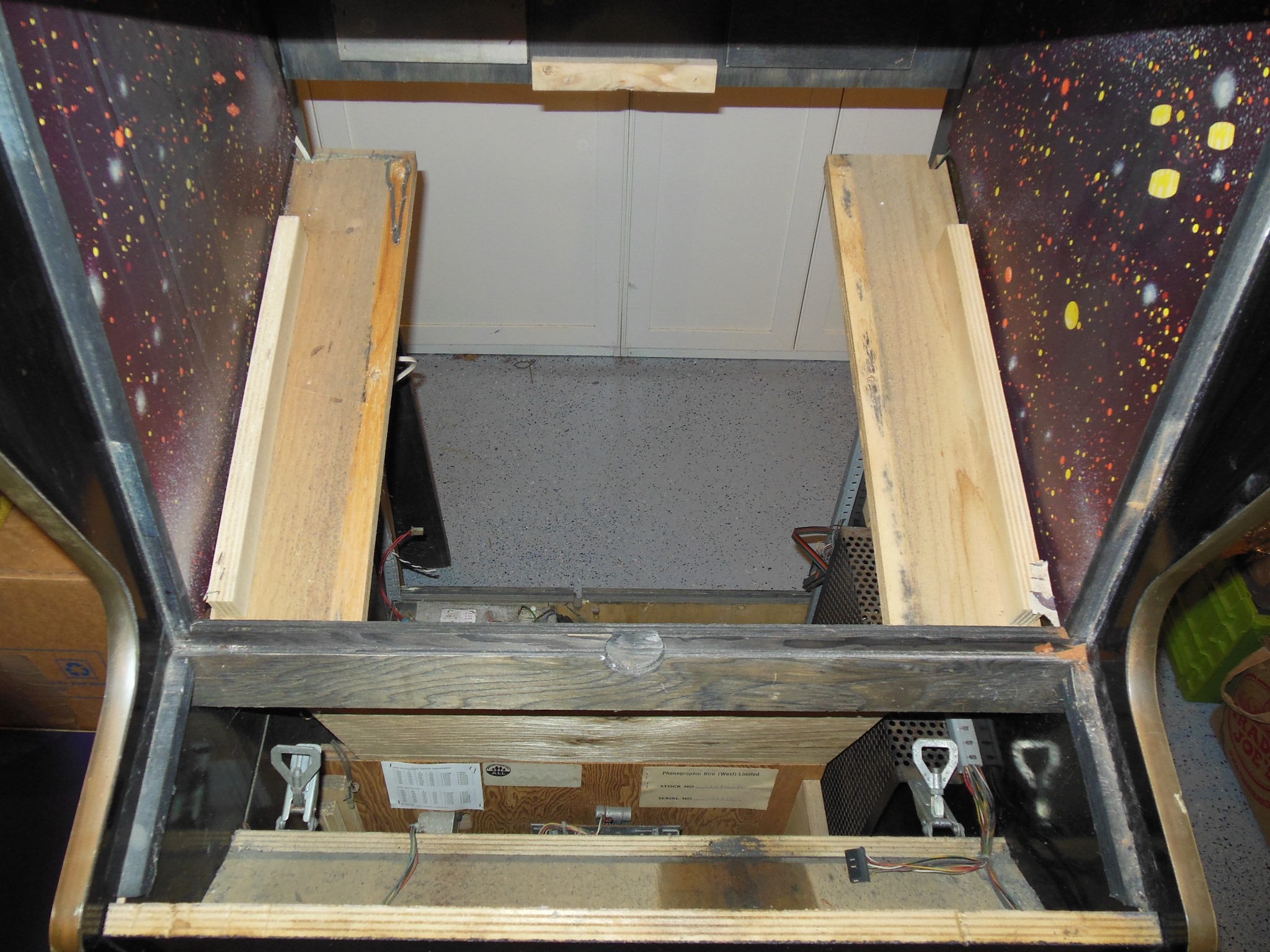 The coin door had some loose wires and the credit PCB was floating loose inside. On the bench the credit PCB appeared to be working properly and was reinstalled back into the cabinet. I assembled a credit button bracket and fitted that to the coin door along with repairing the loose wires.