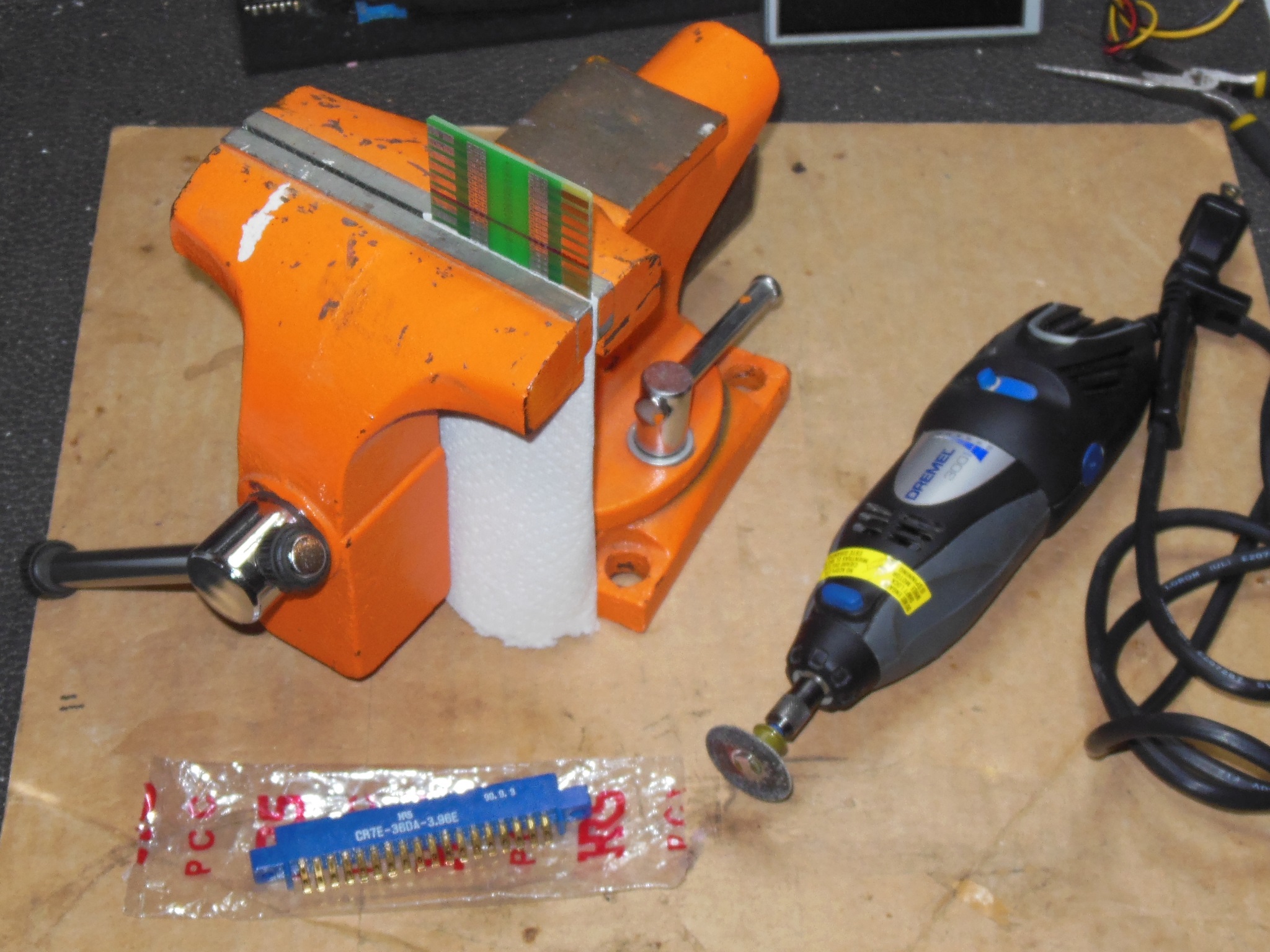 I trimmed down a 28-way JAMMA finger board to 22-way to use for the adaptor. Since the pinout was so similar the adaptor was relatively simple to build.