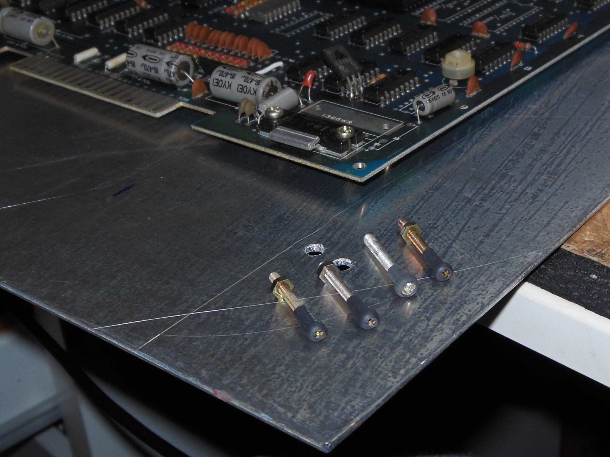 I'd already purchased PCB mounting plates for this series of cabinets as part of a prior restoration and so I had a spare to hand to mark up for the location of the mounting screw.