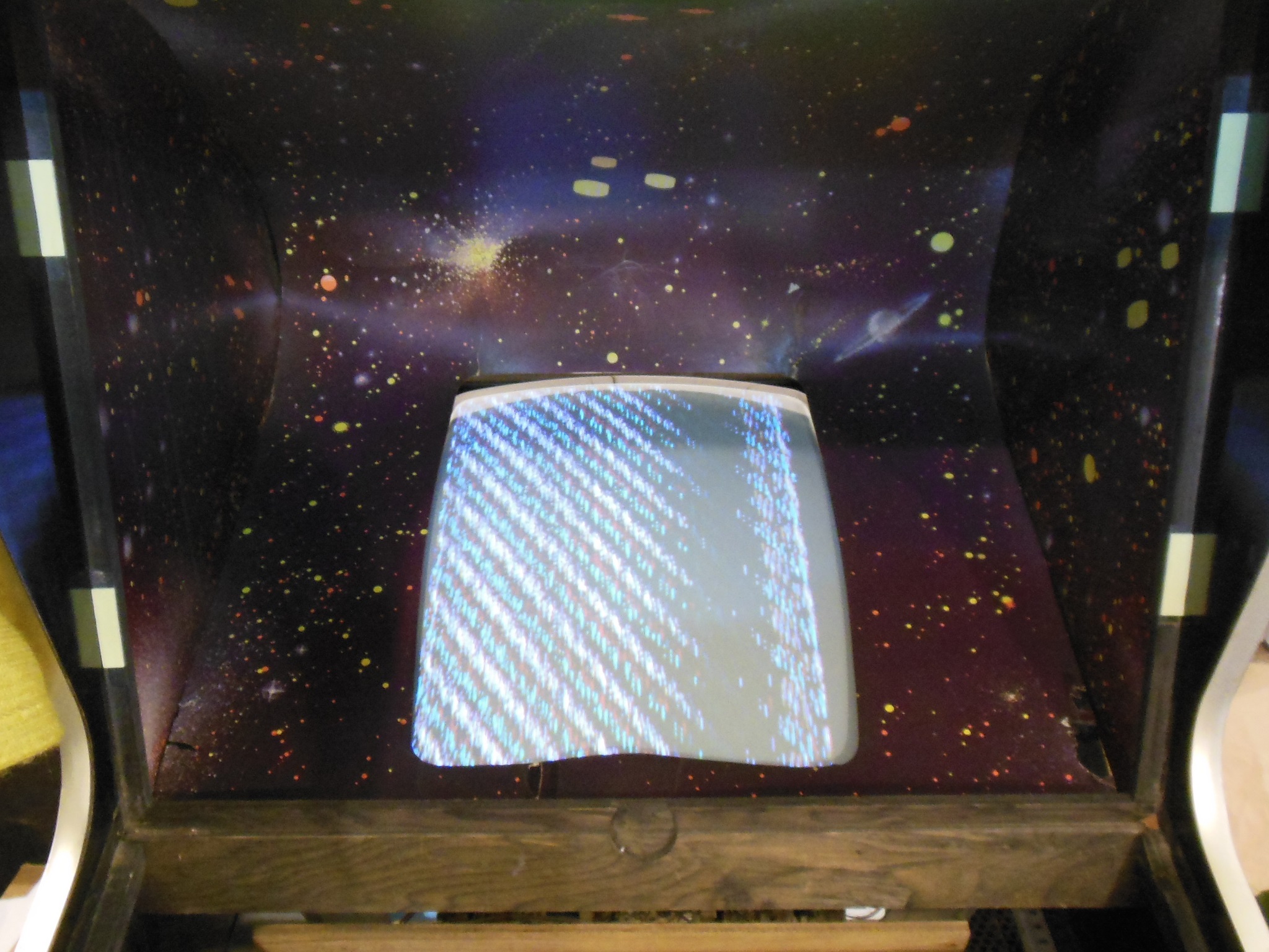 Inside the monitor cavity the cardboard surround had the space themed artwork and was creased, torn and stuck together with electrical tape :(