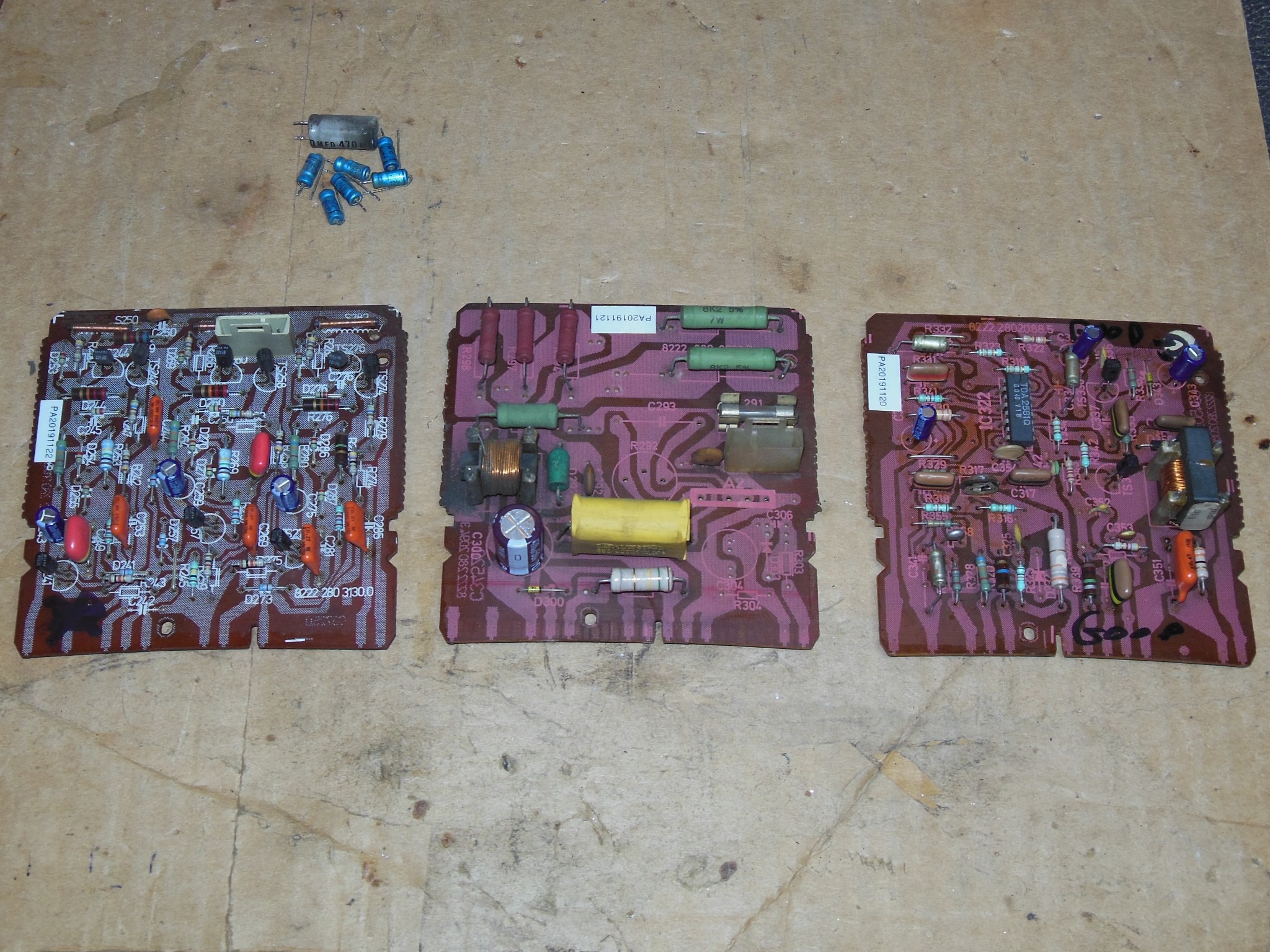 I hadn't yet put together a more complete set of spare daughter PCBs for the KT-3 chassis, so far only the sync PCB had failed in use. Since this was the last of the KT-3 based games to restore I decided to complete the spares for the chassis and cap kitted RGB drive, AC input and regulation PCBs. These were swapped into the Puck Man KT-3, B+ calibrated and run for a few hours. The known working ones removed were added to the show spares boxes.
