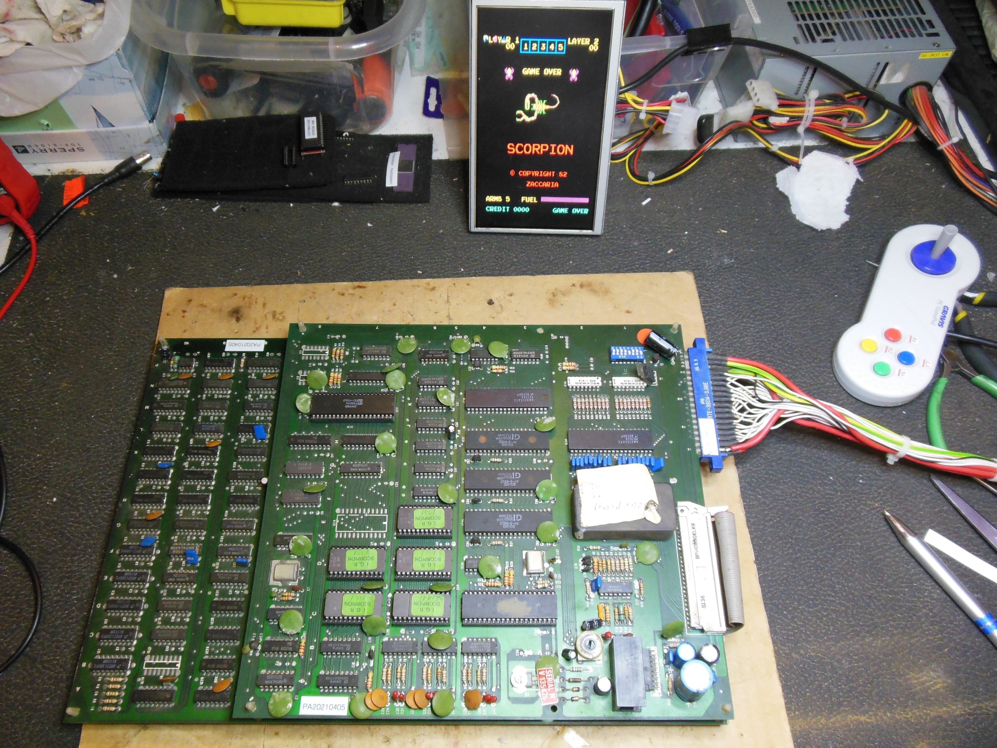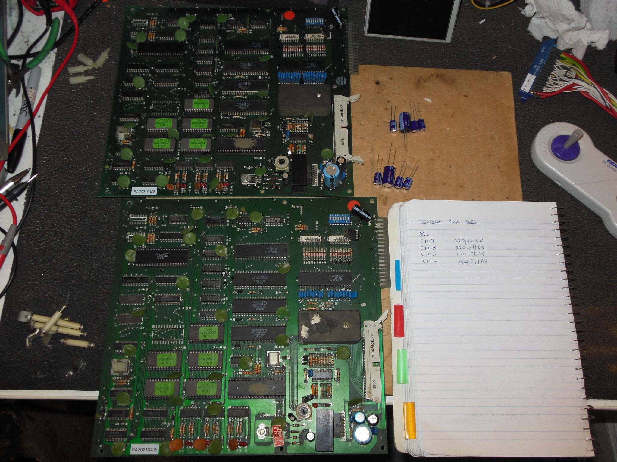 I had two game PCB sets to use as a main and spare. The initial assessment for each