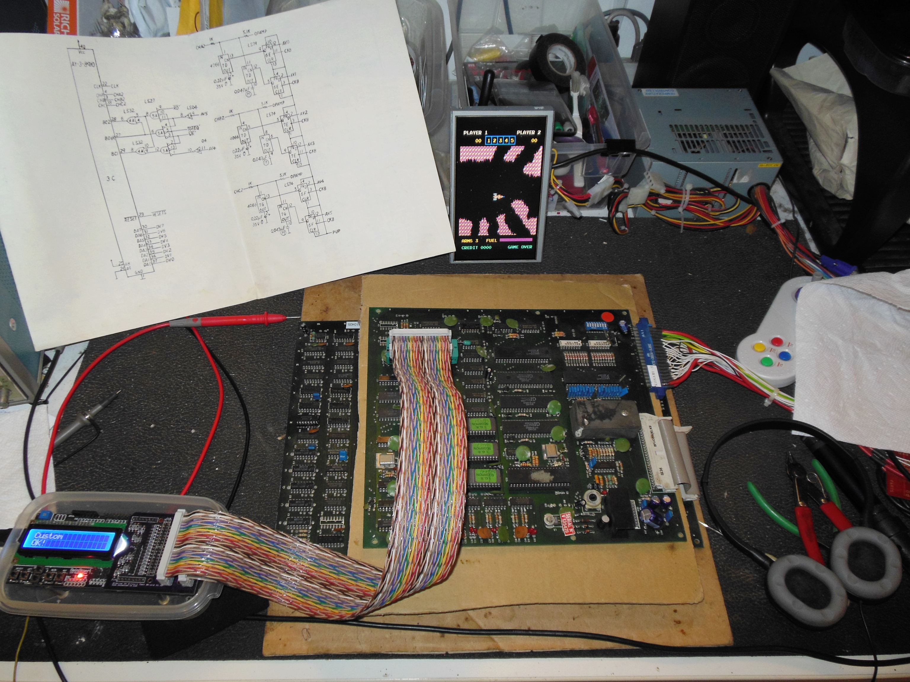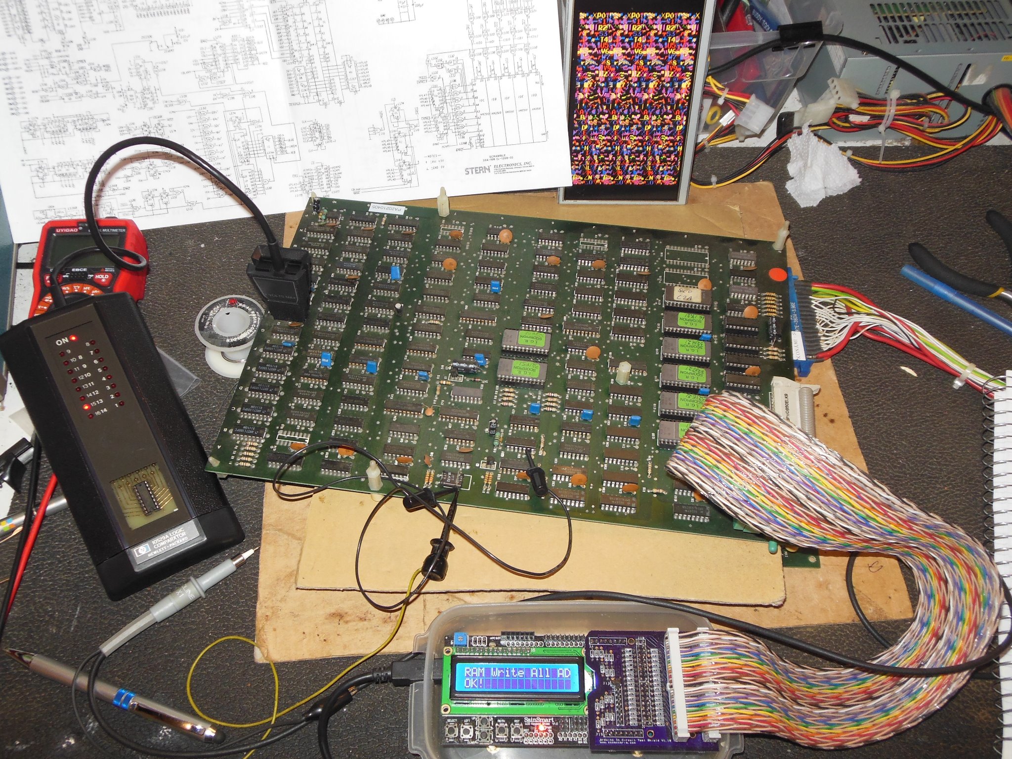 One of the game PCBs had developed a graphics fault, missing sprites. The scope