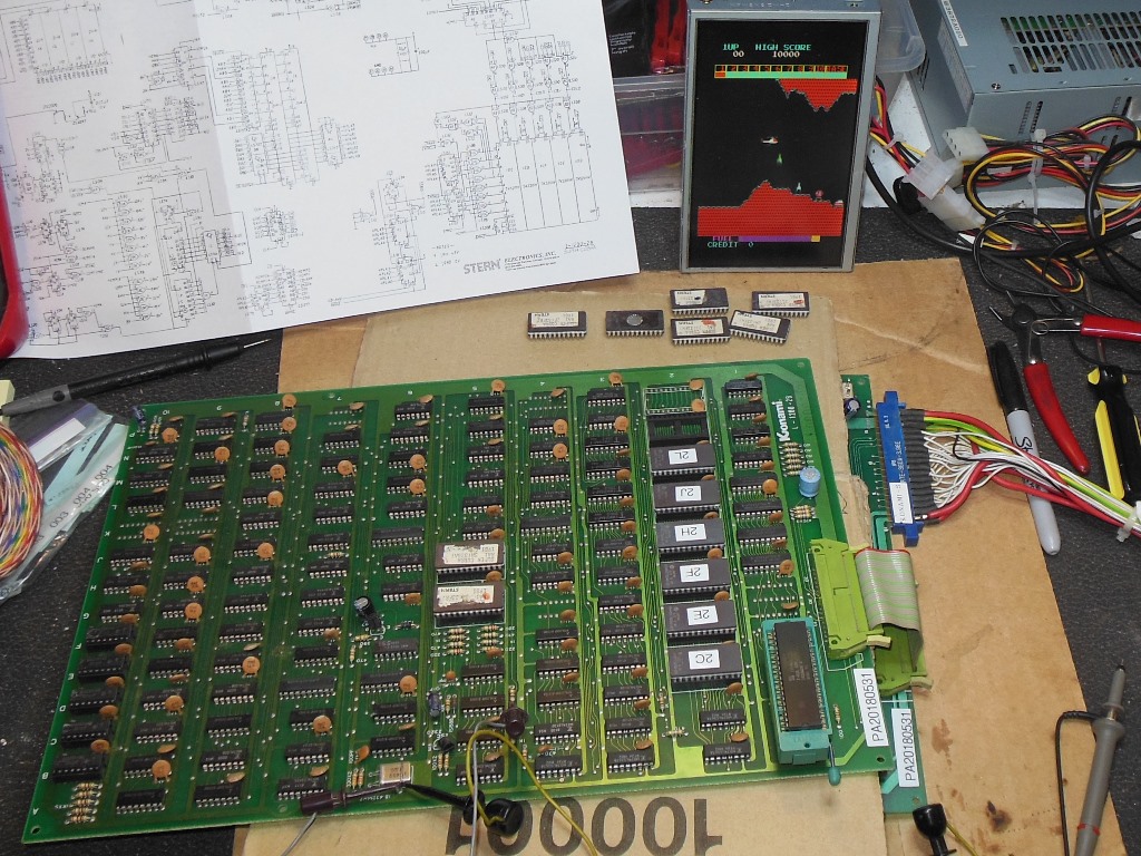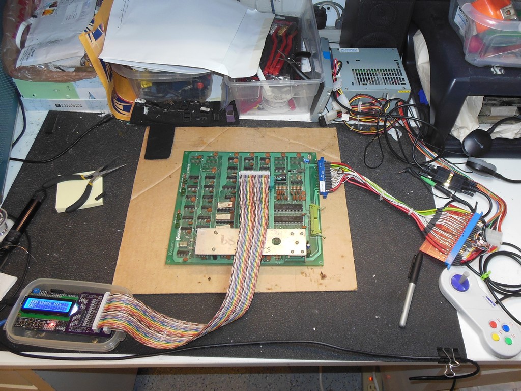 I hadn't yet prepared a spare PCB set for use in case of a failure during the show so I started work on another set. Initial power on showed reasonable video output but the game didn't boot. The watchdog was triggering.