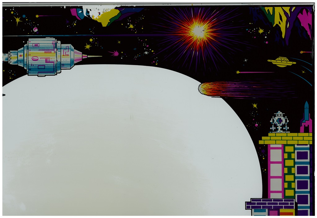 Scanned in the marque, monitor glass and control panel overlay.