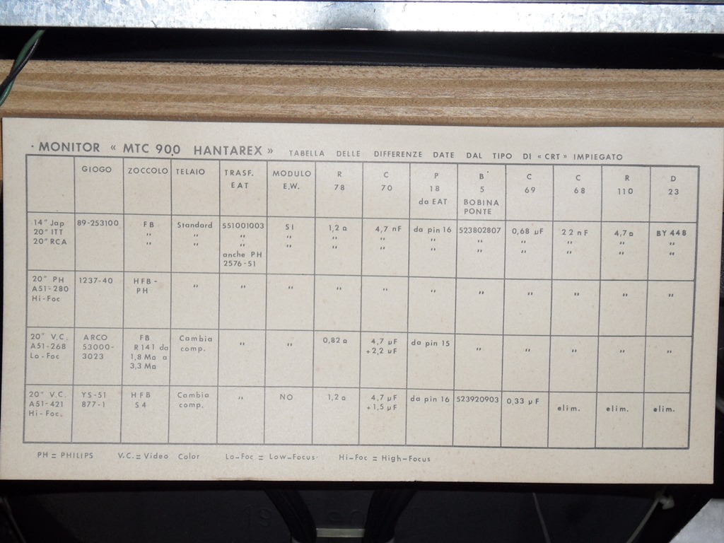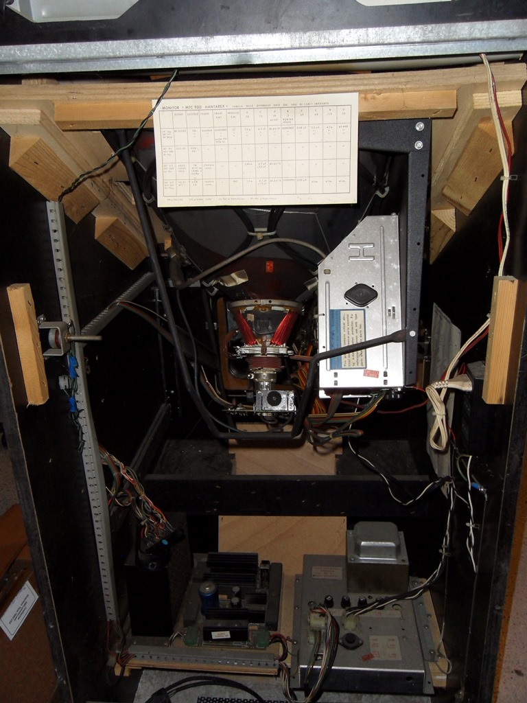 As part of the Mr. Do! restoration some questions were raised over MTC-900 chassis compatibility with various CRT's. In this cab there is a handy chart showing the chassis differences for various CRT's :)