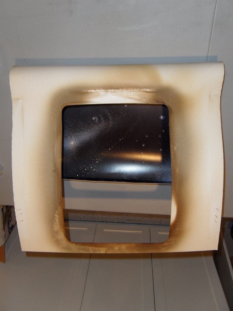 I reinstalled the monitor surround cardboard and put back the cleaned glass.