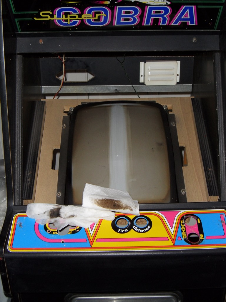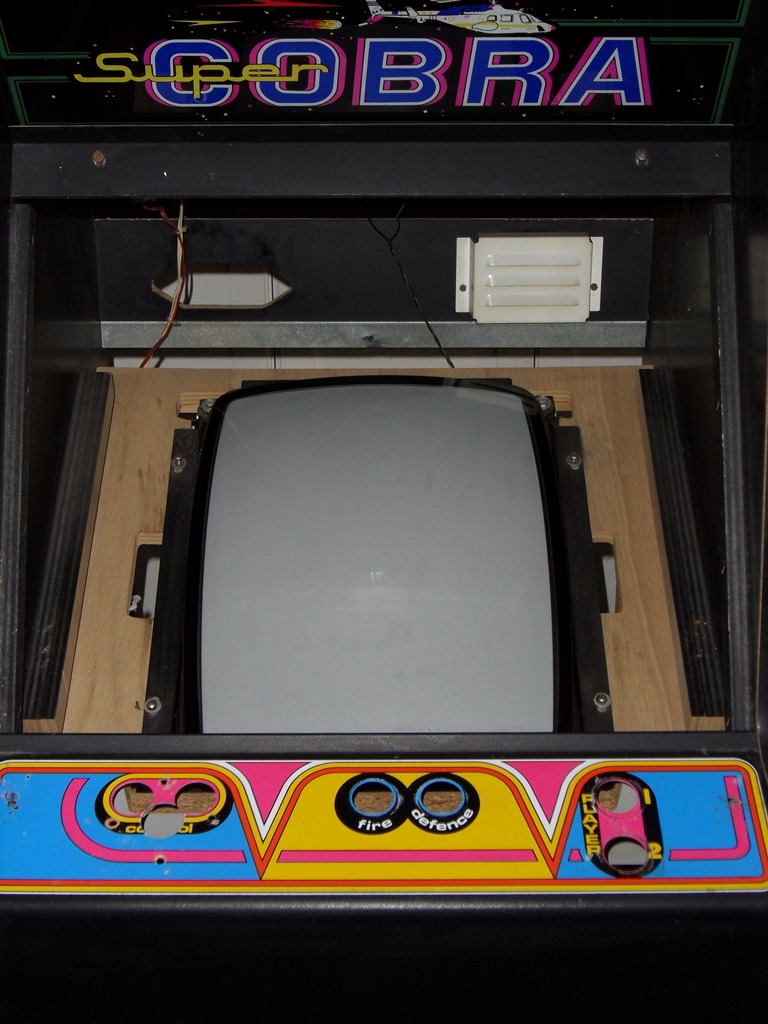 The wiring, monitor and power supply all looked original ("Super Cobra" labels on the power supply). Only the power cord looked like it needed to be replaced. I changed the voltage selector from 220V to 245V to reflect my local 240V supply.