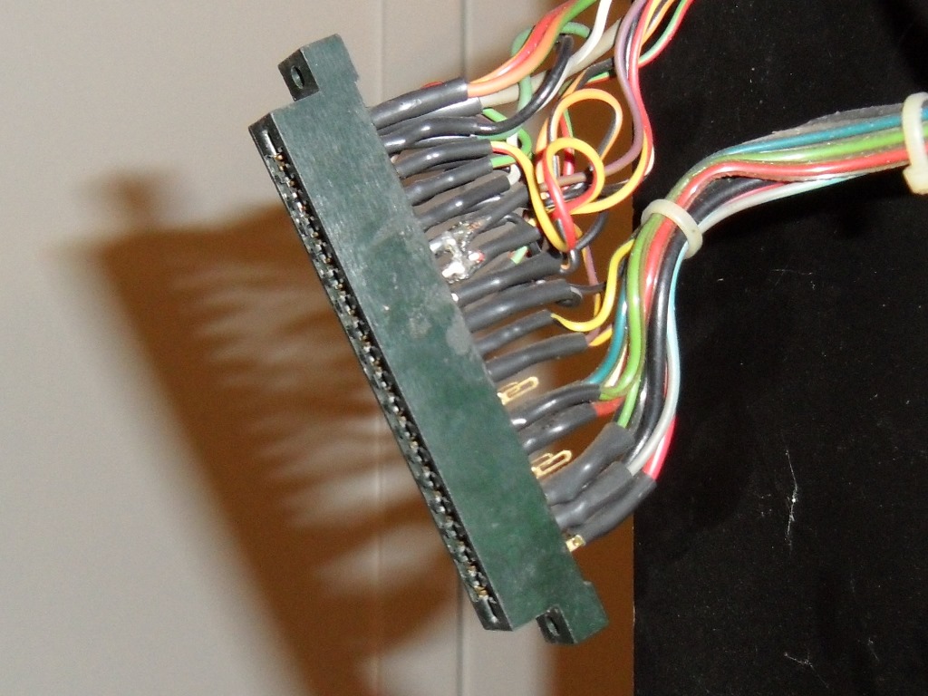 A little bit of pot tweaking and the picture was pretty good. The monitor looked all original. The only issue was that the H width was a little bit short and the pot for that had no effect on it but was OK as is for now. There was a little bit of hacked wiring on the volume pot that needed cleaning up. The sound worked fine. This was with a GGI/Karateco bootleg game PCB until I can get an original Konami running.